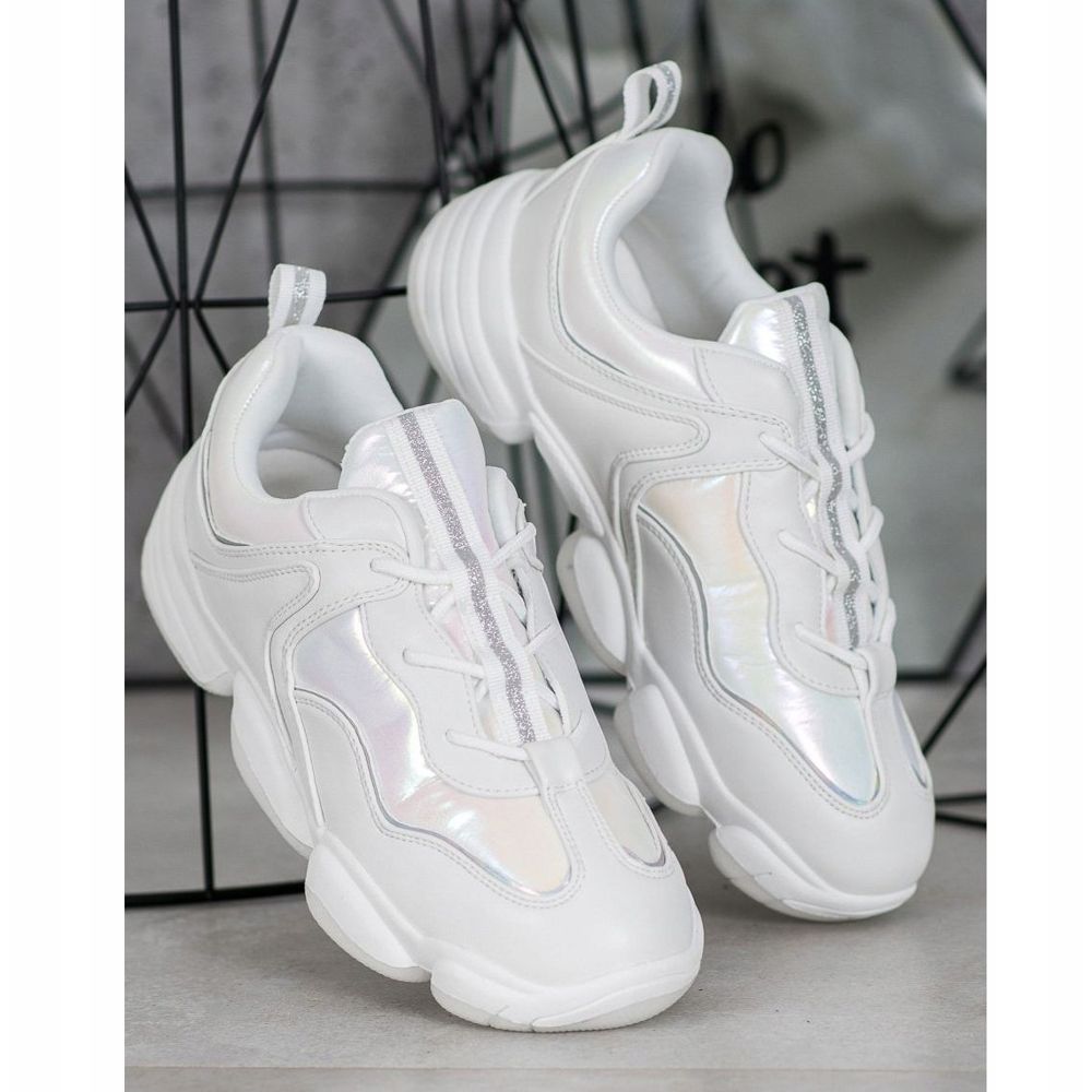 Vi presenterar snygga Kylie sportskor i en elegant vit färg, som kombinerar komfort och moderiktig design. Dessa damskor är det perfekta valet för kvinnor som värdesätter ett modernt utseende och vardagskomfort. De kännetecknas av ursprungliga, glänsande insatser på ovansidan, vilket ger dem en unik karaktär.