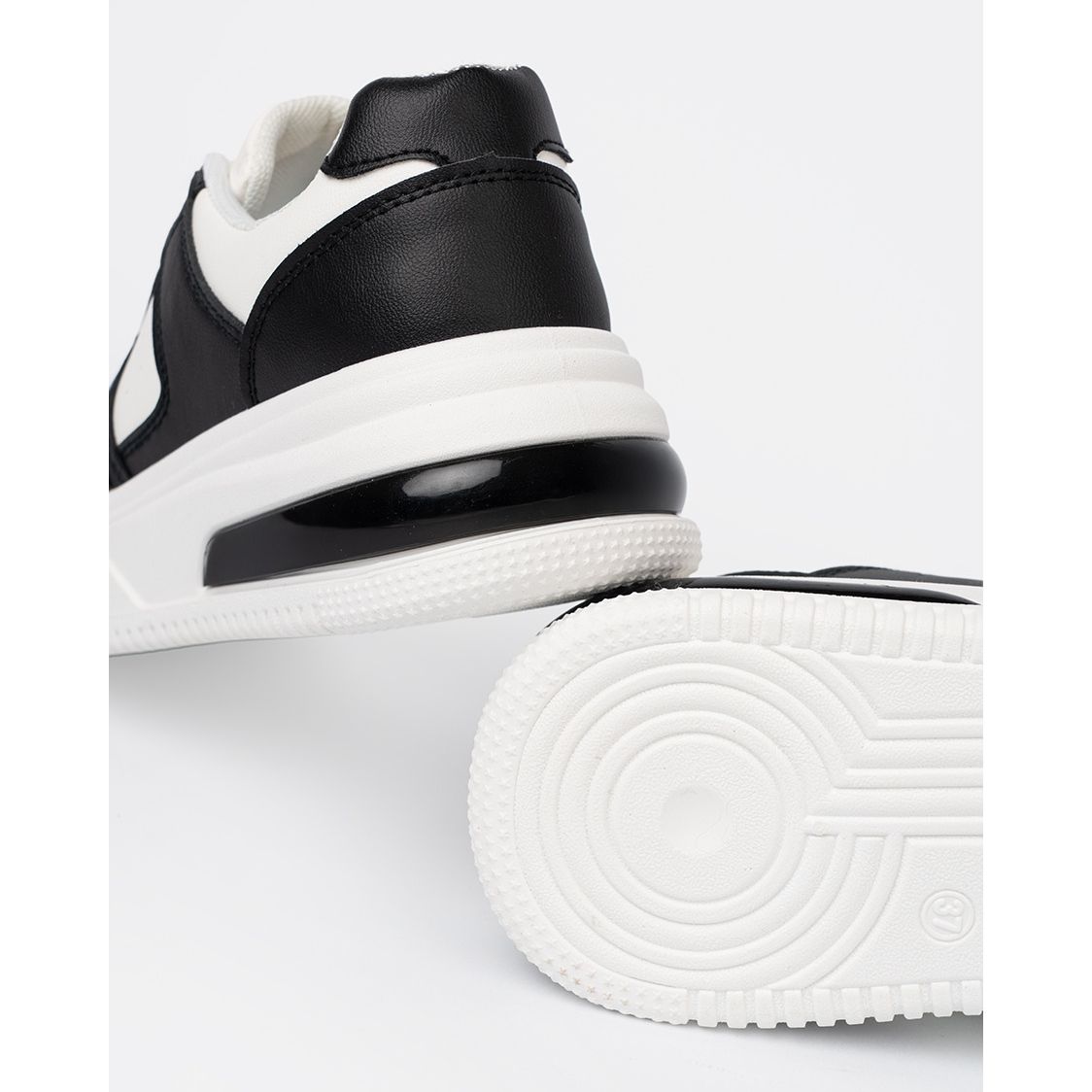 Detaljer: Shelvt Snygga svarta och vita sneakers med en tjock sula