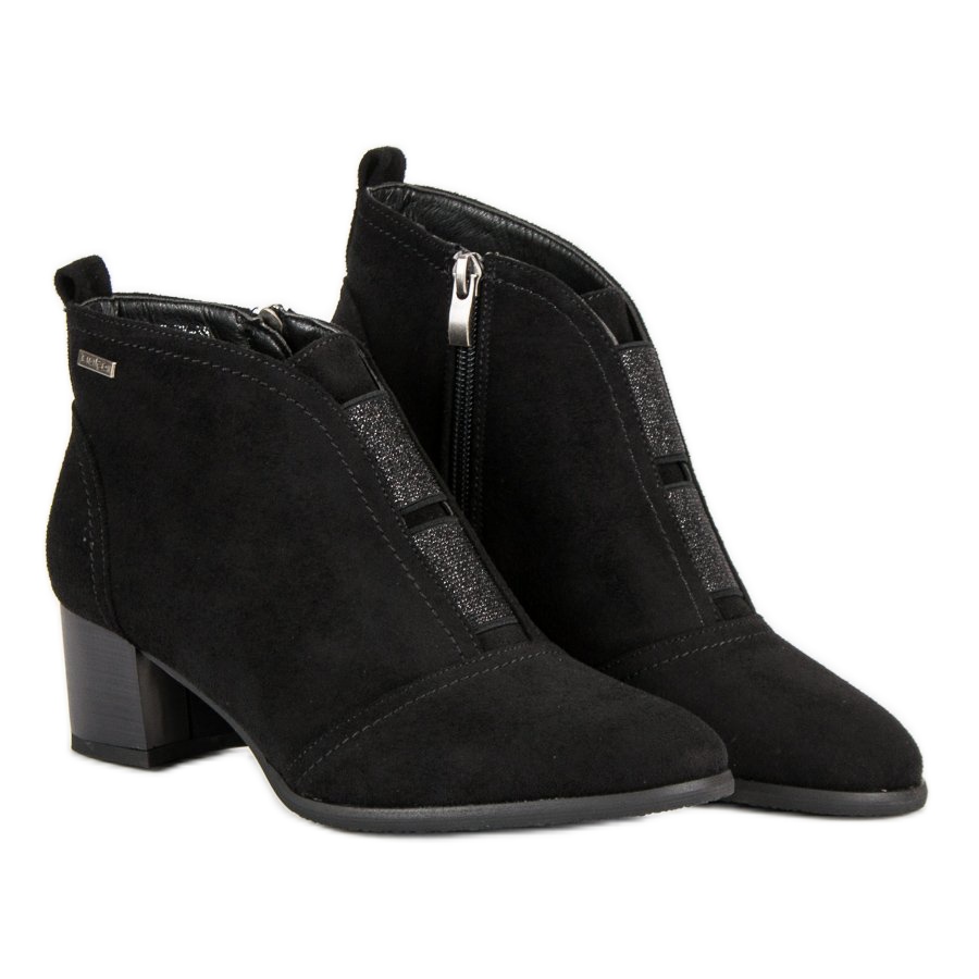 Snygga svarta Filippo ankelboots är det perfekta valet för kvinnor som värdesätter en kombination av komfort och elegans. Tillverkade av högkvalitativ ekologisk mocka, de ser inte bara moderiktiga utan också snygga ut. Deras karaktäristiska element är en 5 cm hög blockklack, som säkerställer stabilitet och komfort när den bärs varje dag.