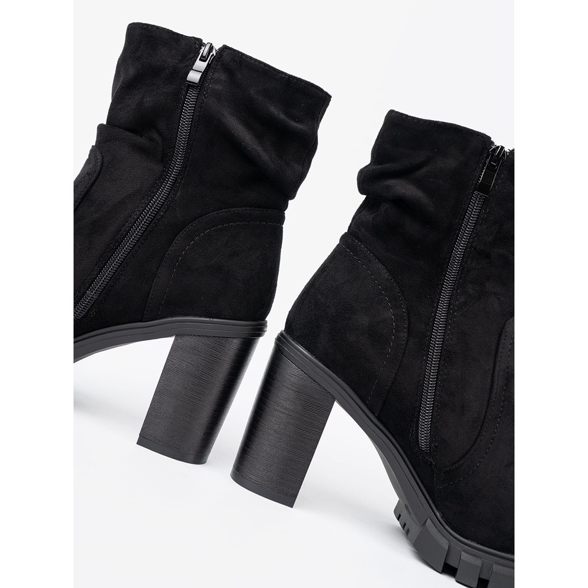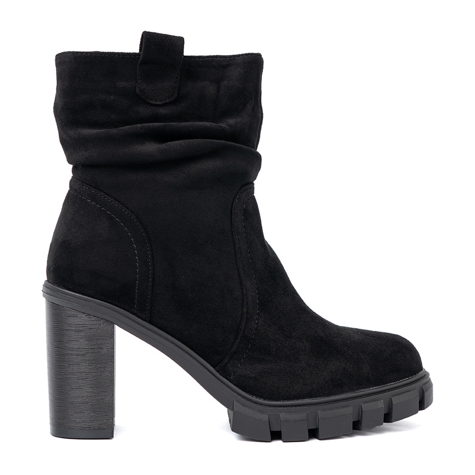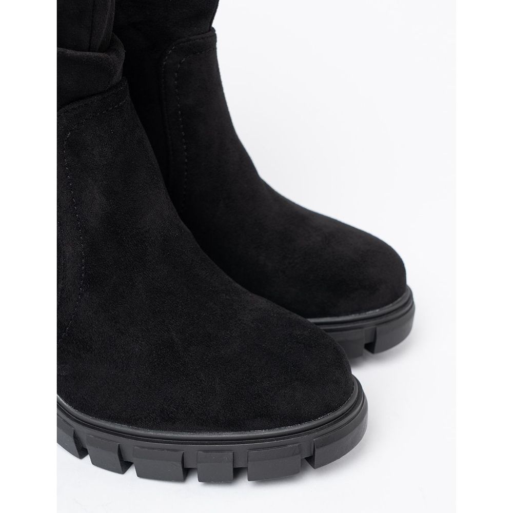 Snygga svarta stövlar med en skrynklig övre del från tillverkaren Shelvt är det perfekta valet för varje fashionabla kvinna som vill kombinera komfort med elegans. Dessa unika stövlar, som hålls i en avslappnad stil, kommer att vara perfekta för varje dag, både på jobbet och under helgens promenader.