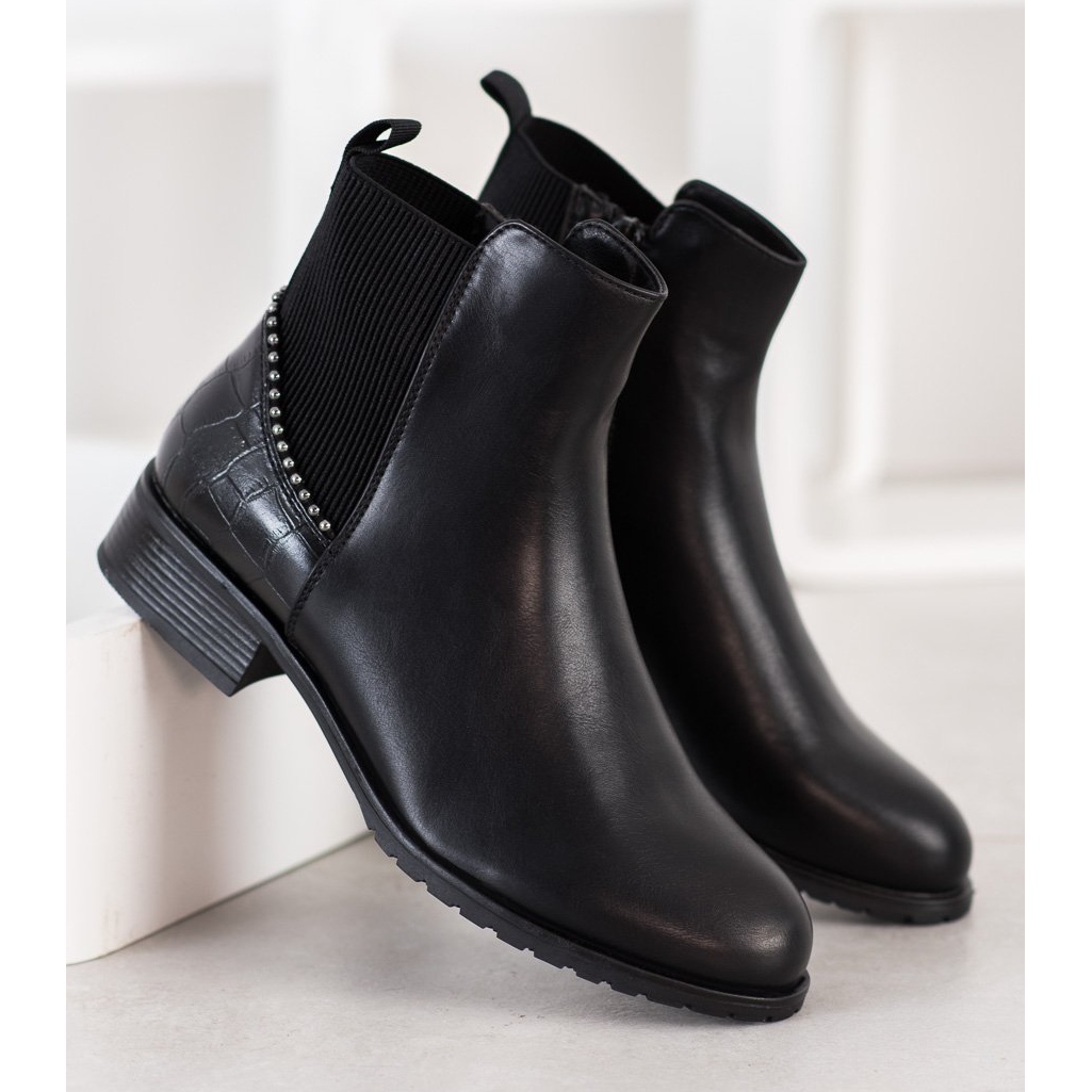 Dessa snygga svarta stövlar är ett perfekt val för varje kvinna som värdesätter komfort, moderiktigt utseende och praktiska egenskaper. De kommer säkert att bli en oumbärlig del av din garderob under den kommande säsongen. Bär dem med dina favoritjeans eller en flödande klänning - möjligheterna är oändliga!