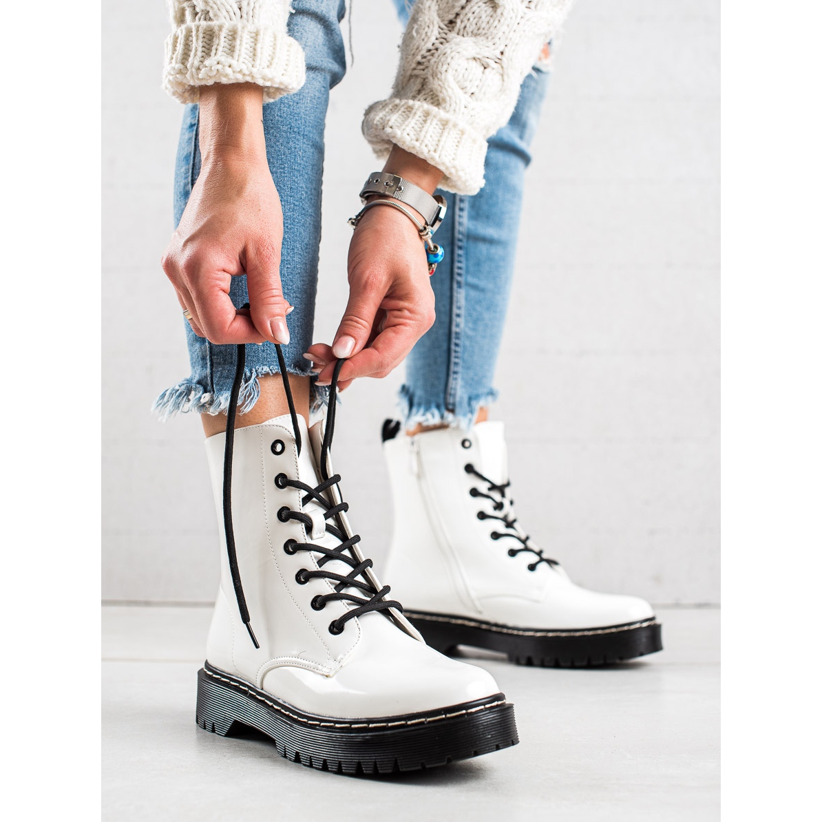 Moderna och praktiska Vinceza kvinnors fångare, idealiska för hösten/vintersäsongen. Kombinationen av en klassisk glans klippt med en modern, lackerad finish i en elegant vit färg och en kontrasterande svart sula.