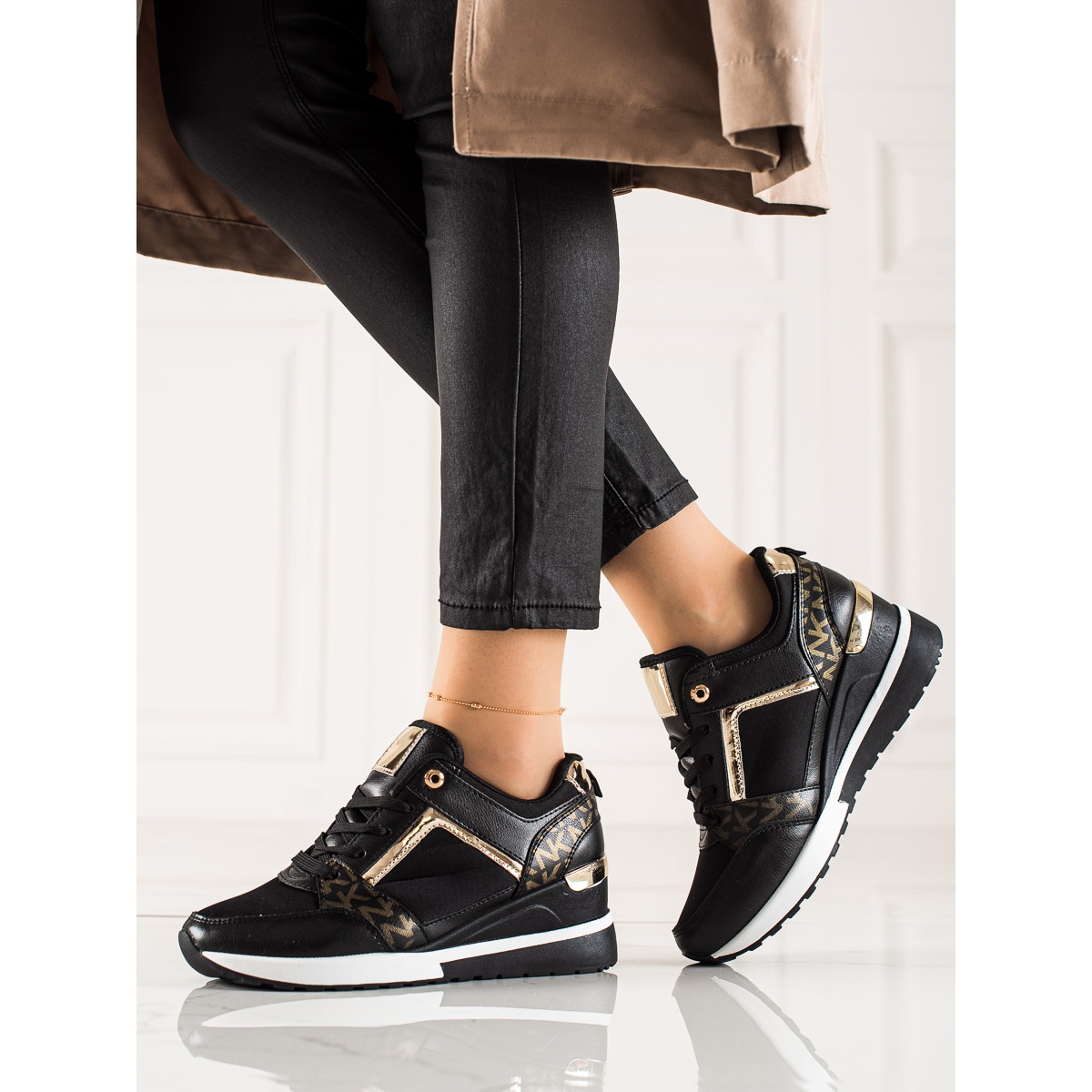 Detaljer: TRENDI Snygga wedge sneakers svart gyllene