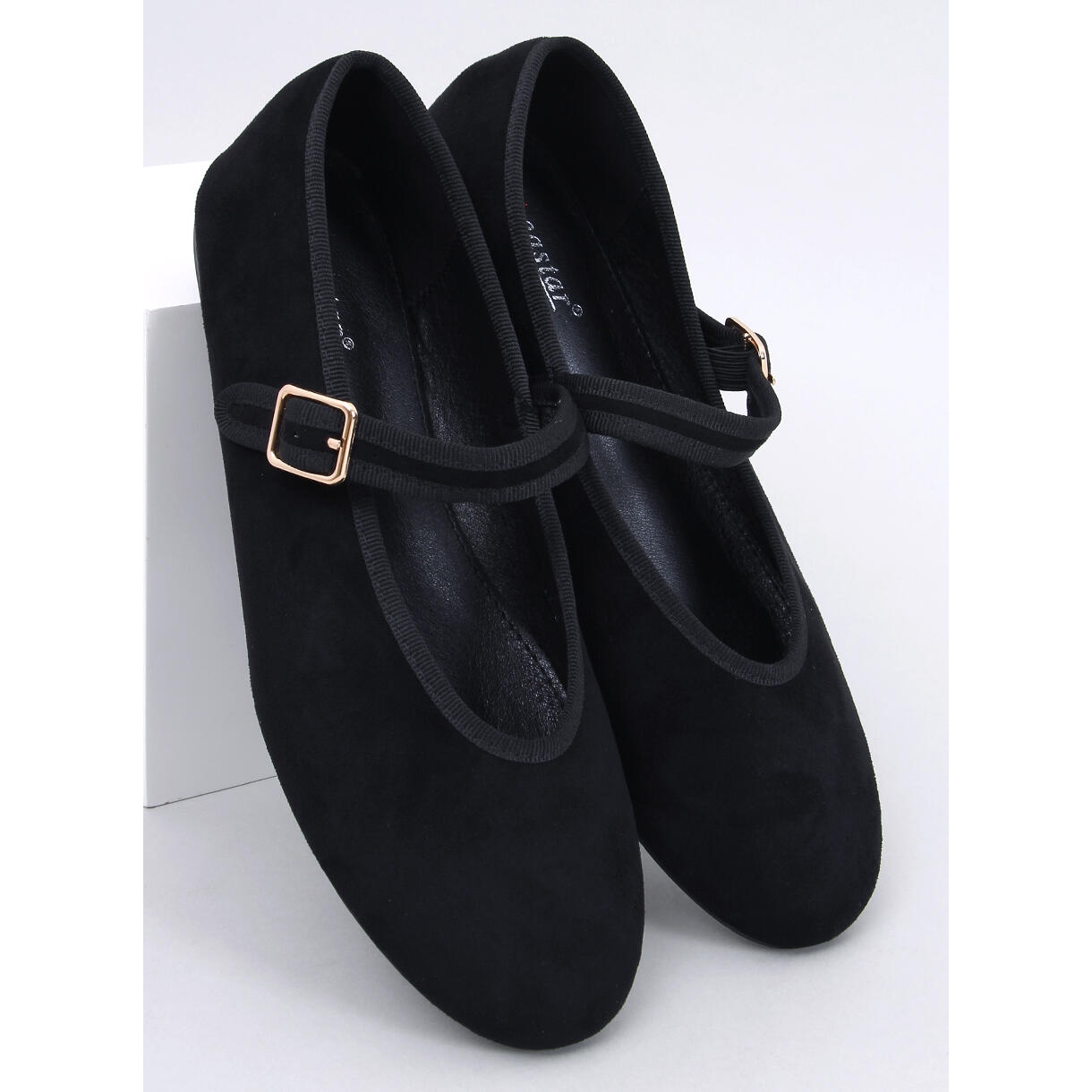 Ballerinas är tillverkad av ekologisk mocka och kännetecknas av utmärkt kvalitet och estetik. En slät, svart färg gör att de matchar många stilar - från eleganta byxor till luftiga klänningar. En platt häl med en höjd av 1,0 cm ger komfort även under en lång bärning, och spännet ger dem en subtil karaktär.