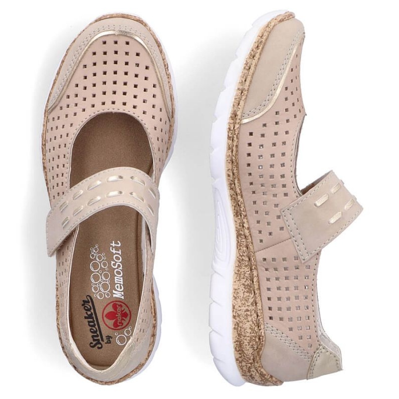 Information: Sommarskor i läder med kardborre Rieker W RKR582 beige