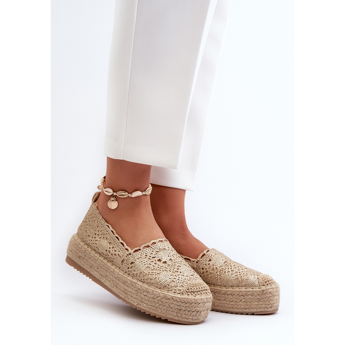 Upptäck espadrillor i spets för kvinnor på en plattform i en vacker guldfärg från märket Elarose! Dessa unika skor är ett perfekt val för kvinnor som vill kombinera stil med komfort under sommardagar.