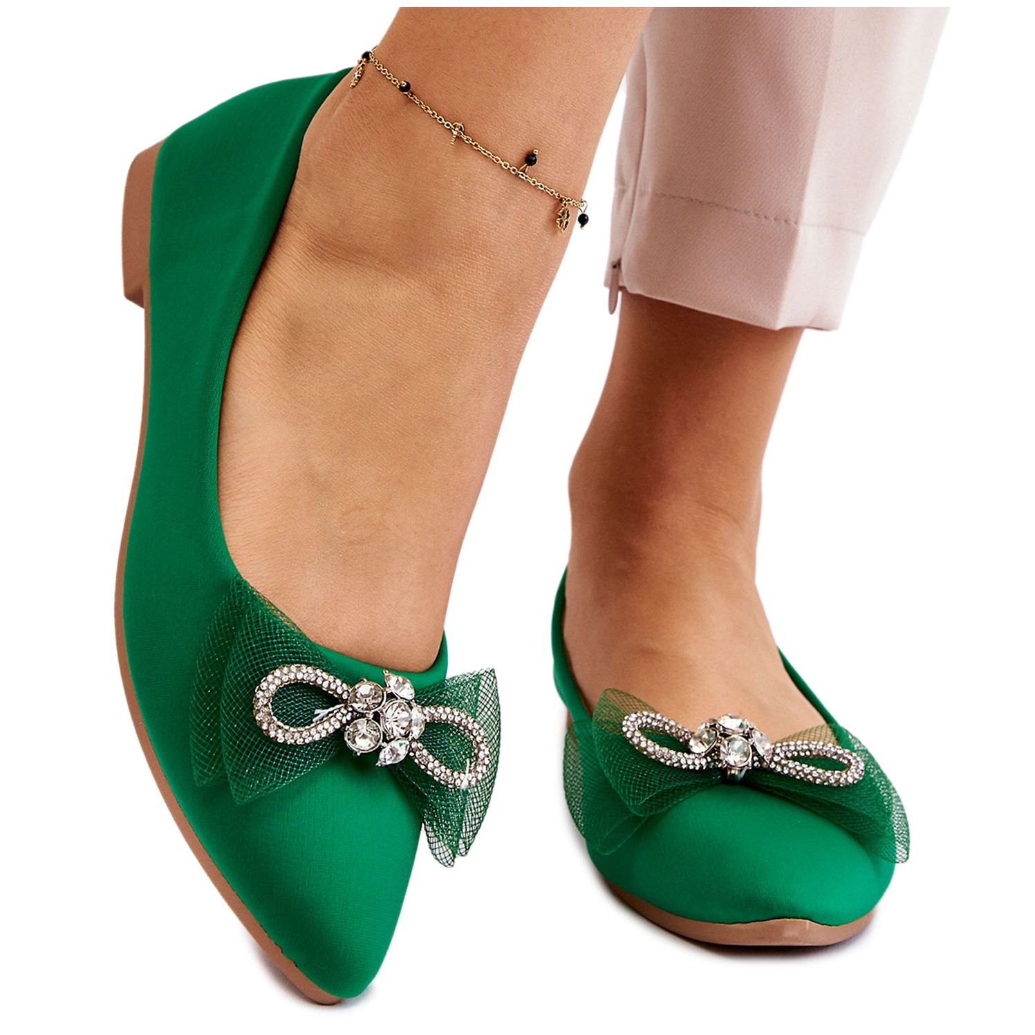 Information: PS1 Spetsiga ballerinor för kvinnor med en dekorativ rosett grön lysande