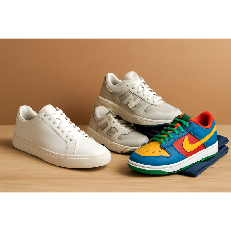 Bygg din garderob baserad på vita minimalistiska sneakers, lägg till en chunky modell i en dämpad färg och, valfritt, en färgstark statementplagg. Detta ger dig mångsidighet för alla tillfällen.