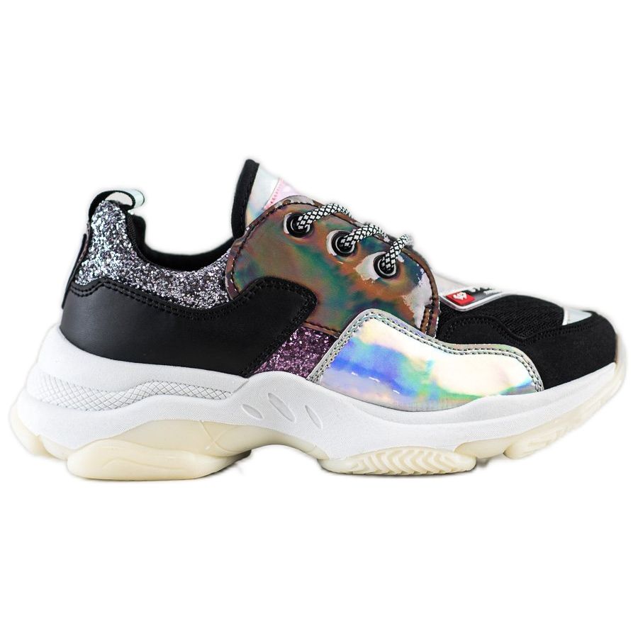De holografiska och glitterinläggen som används ger sneakers en unik karaktär, vilket gör dem perfekta för både fysisk aktivitet och vardagsstyling. Deras sportiga stil passar perfekt till de senaste trenderna, och den flerfärgade designen drar till sig uppmärksamhet och tillför energi till varje styling.