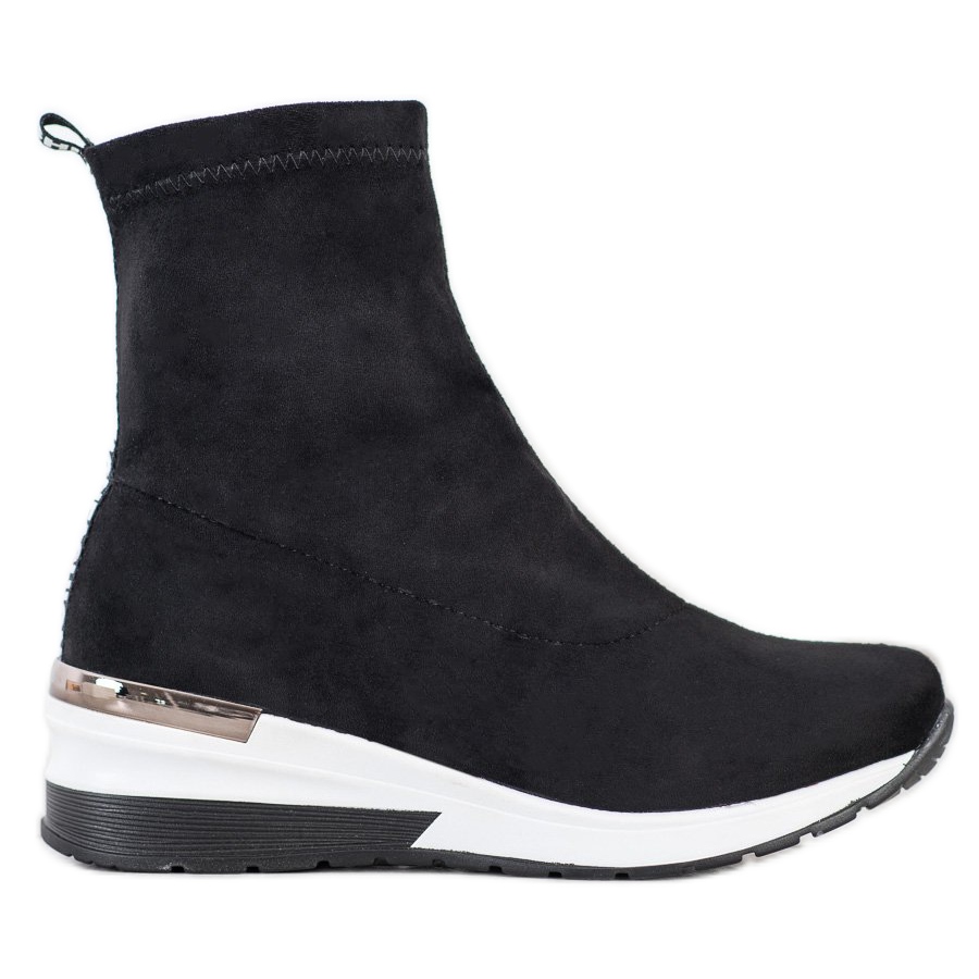 Dessa svarta ankelboots har designats med en aktiv livsstil i åtanke. Tillverkade av ekologiskt mockaläder ser de inte bara imponerande ut, utan ger också tillräcklig ventilation. En mjuk, inbyggd häl omsluter foten, vilket gör skorna extremt bekväma och vardagsbruket är ett nöje.