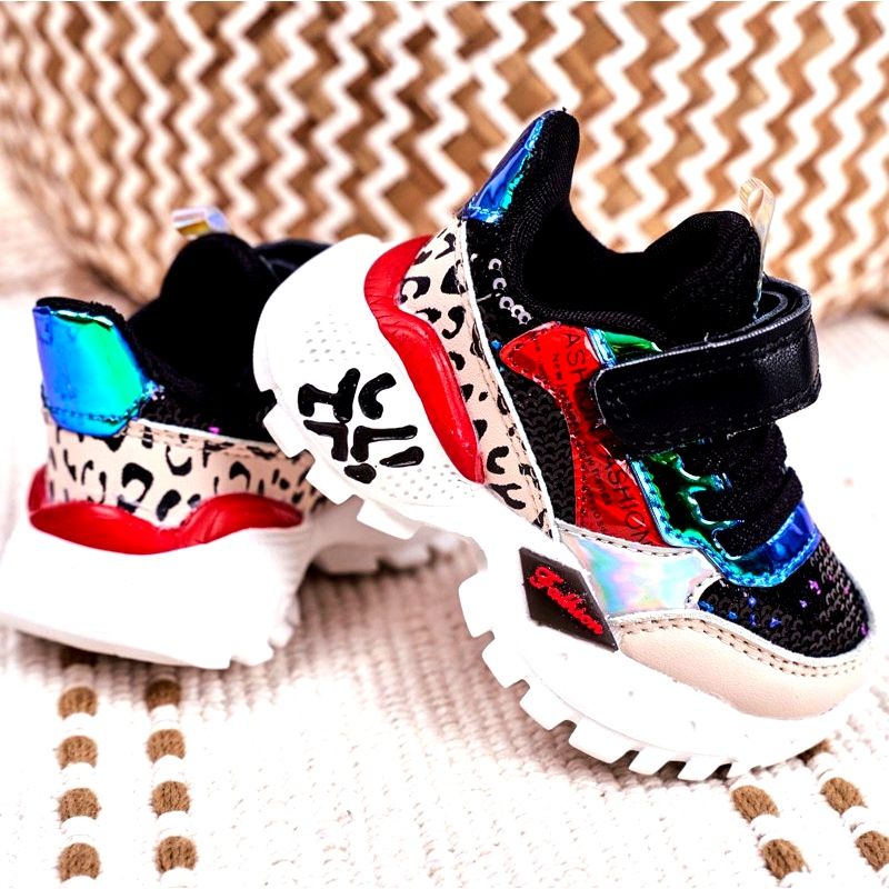 FRROCK FRROCK Sportbarnskor med kardborrband Svart Var lycklig beige röd blå