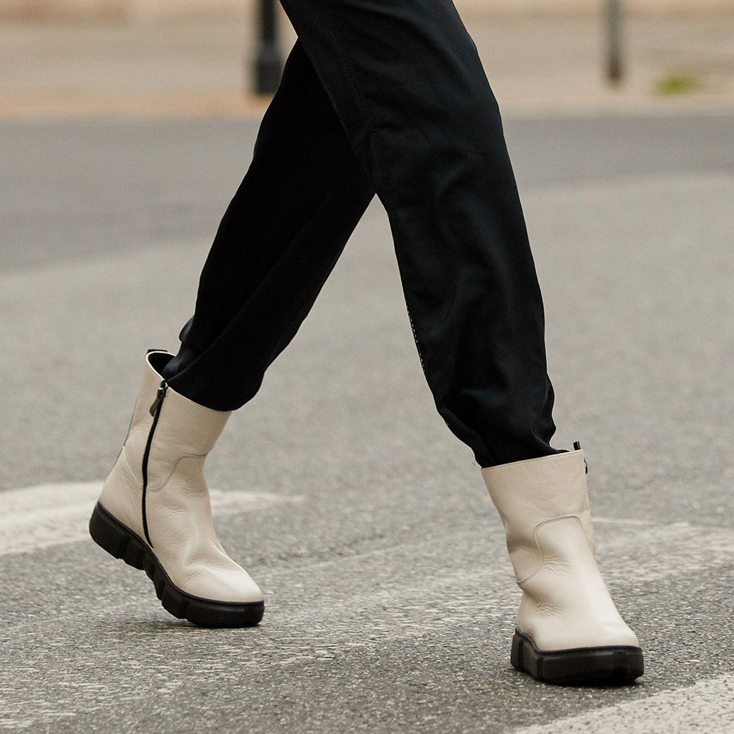 Rent estetiskt är vita ankelboots universella och matchar både casual jeans och en mer sportig garderob. De har inget dominerande mönster, vilket gör dem lätta att styla med en mängd olika kläder. Skorna knäpps med dragkedja vilket gör dem lätta att ta av och på.