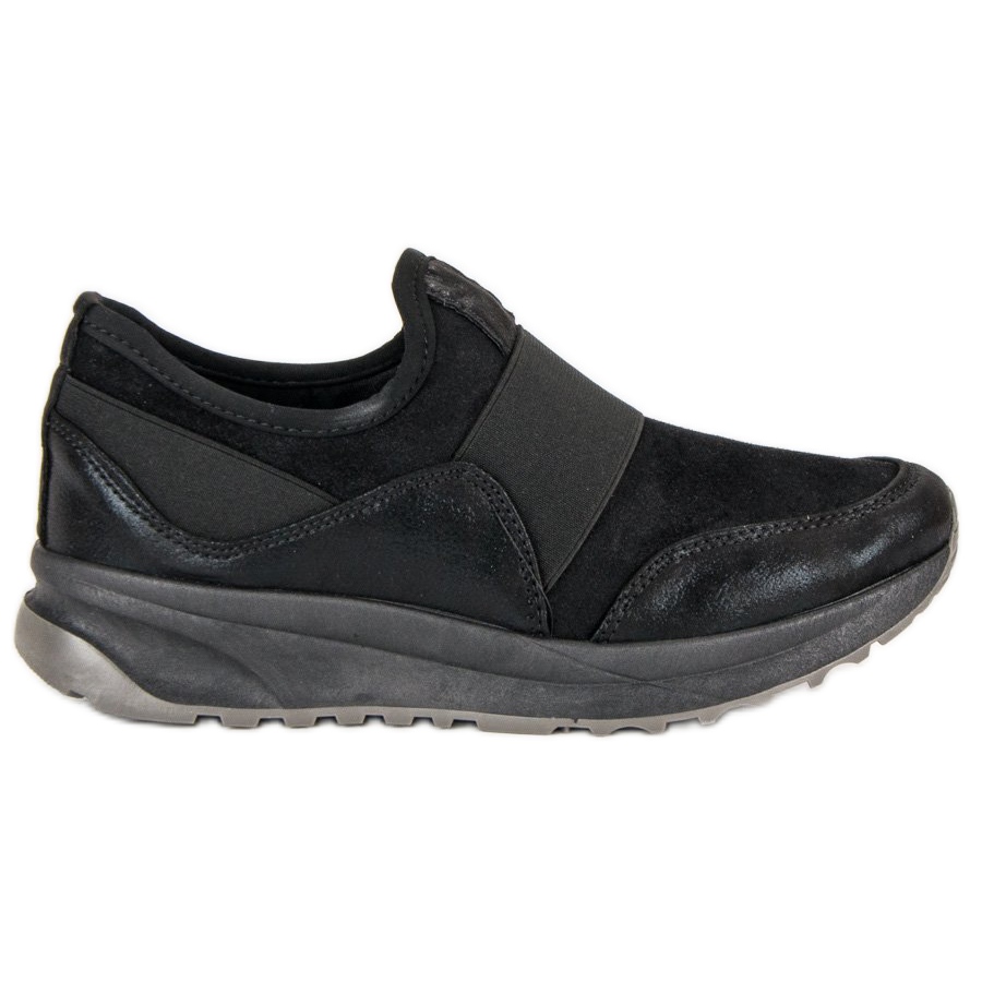 Bestelle skor är utrustade med en gummisula med slitbana, vilket garanterar optimalt grepp och komfort under vardagliga aktiviteter. En mjuk häldisk och en innersula i textil ser till att dina fötter känns bekväma hela dagen. Svarta slip-on sportskor är ett perfekt alternativ till traditionella modeller med snörning eller kardborreband, som kombinerar praktiska egenskaper med elegans.
