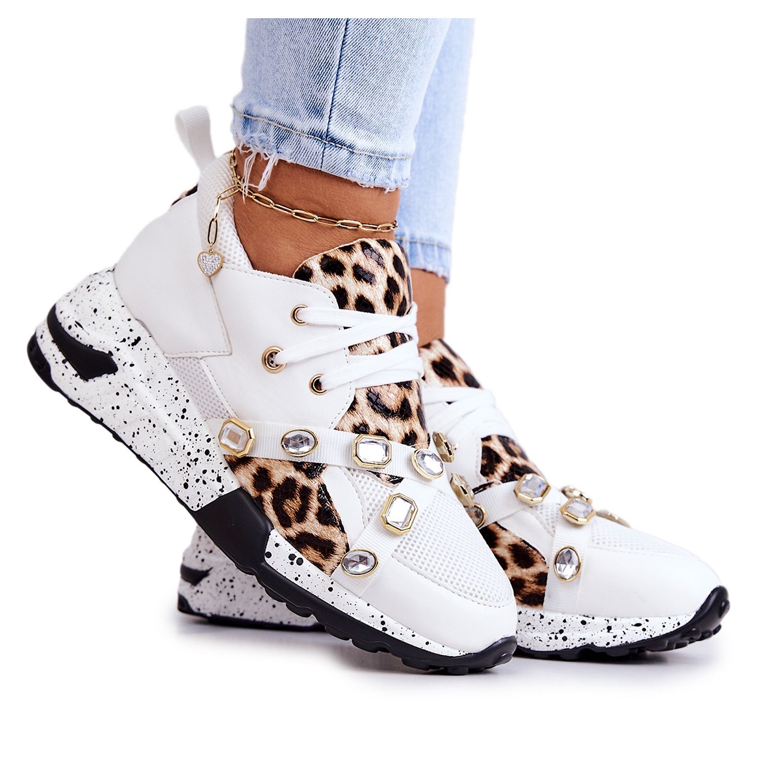 Designen på Lu Boo-skor kännetecknas av en unik design som fångar ögat. Dekorationer i form av stora kristaller är en imponerande dekoration som ger dem en unik karaktär. Den runda tån och avsaknaden av en häl gör dem extremt bekväma och perfekta för både sport och vardagsstyling.