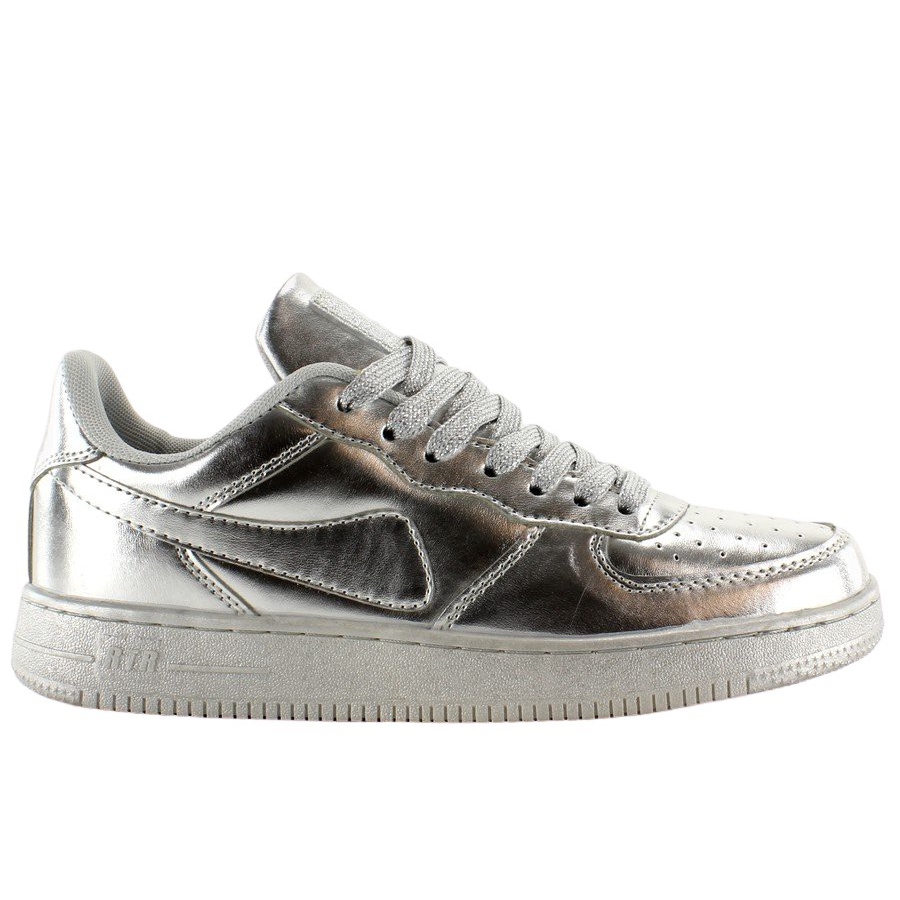 Den metalliska nyansen gör att skorna lätt matchar olika outfits, vilket ger dem en modern accent. En platt sula med en höjd på 3 cm garanterar inte bara komfort, utan också stabilitet vid varje steg. Den runda tån och snörning gör att skorna ger utmärkt fotstöd, vilket är viktigt vid fysisk aktivitet.