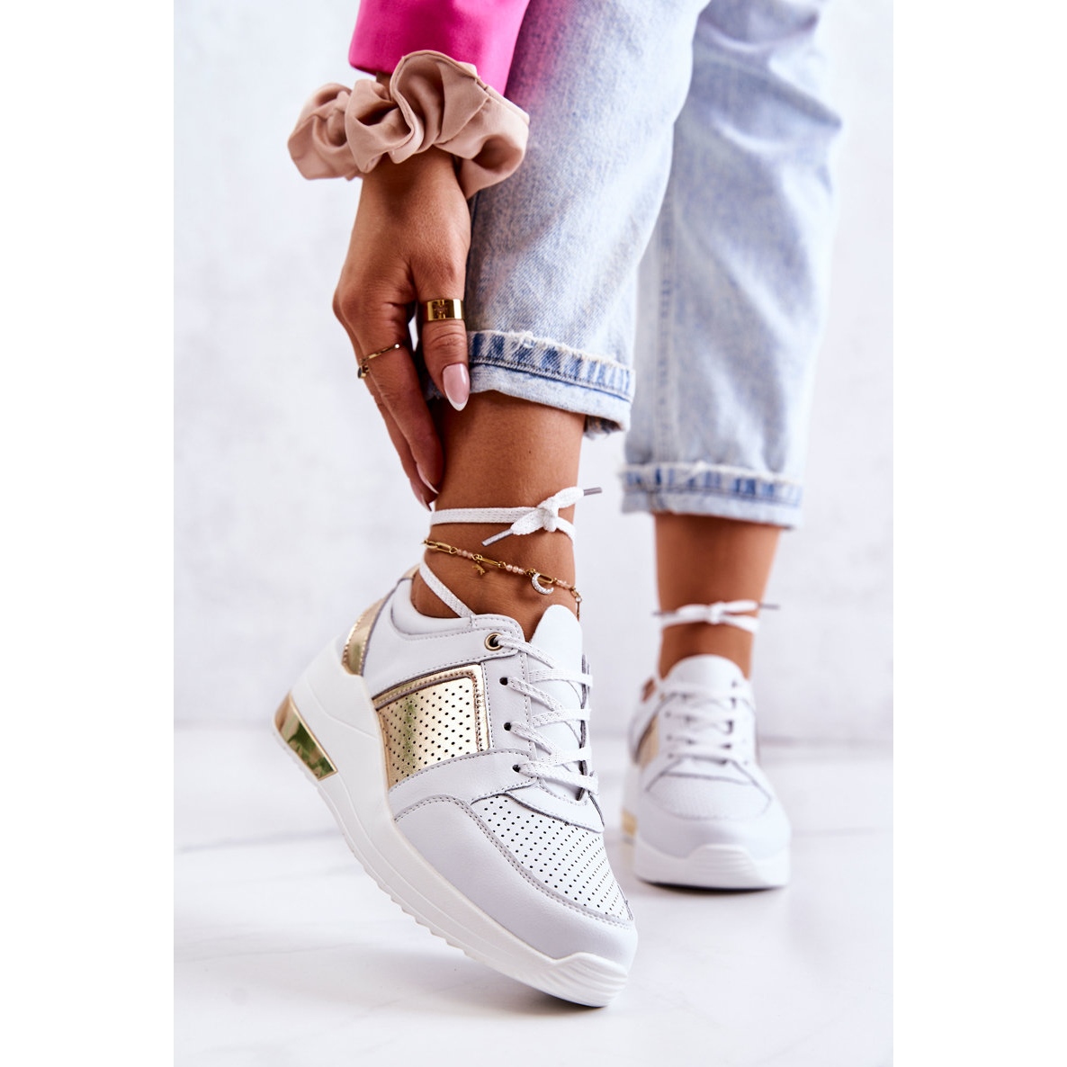 S.Barski S.Barski Sportskor i läder för kvinnor på en kil Vit Larson gyllene