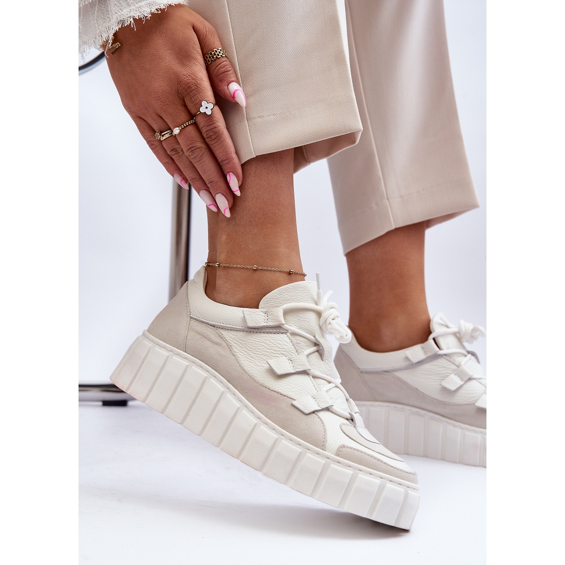 Zazoo Sportskor i läder för kvinnor på plattformen M01/1 Zazoo ljusbeige