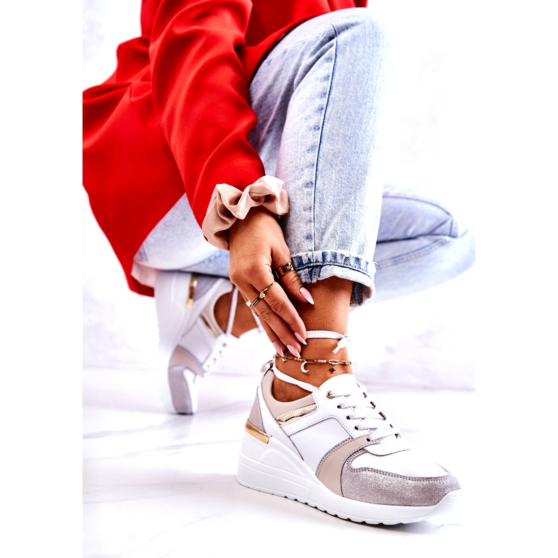 - Modell: Läder Sportskor På En Kil, Vit-Grå Ray