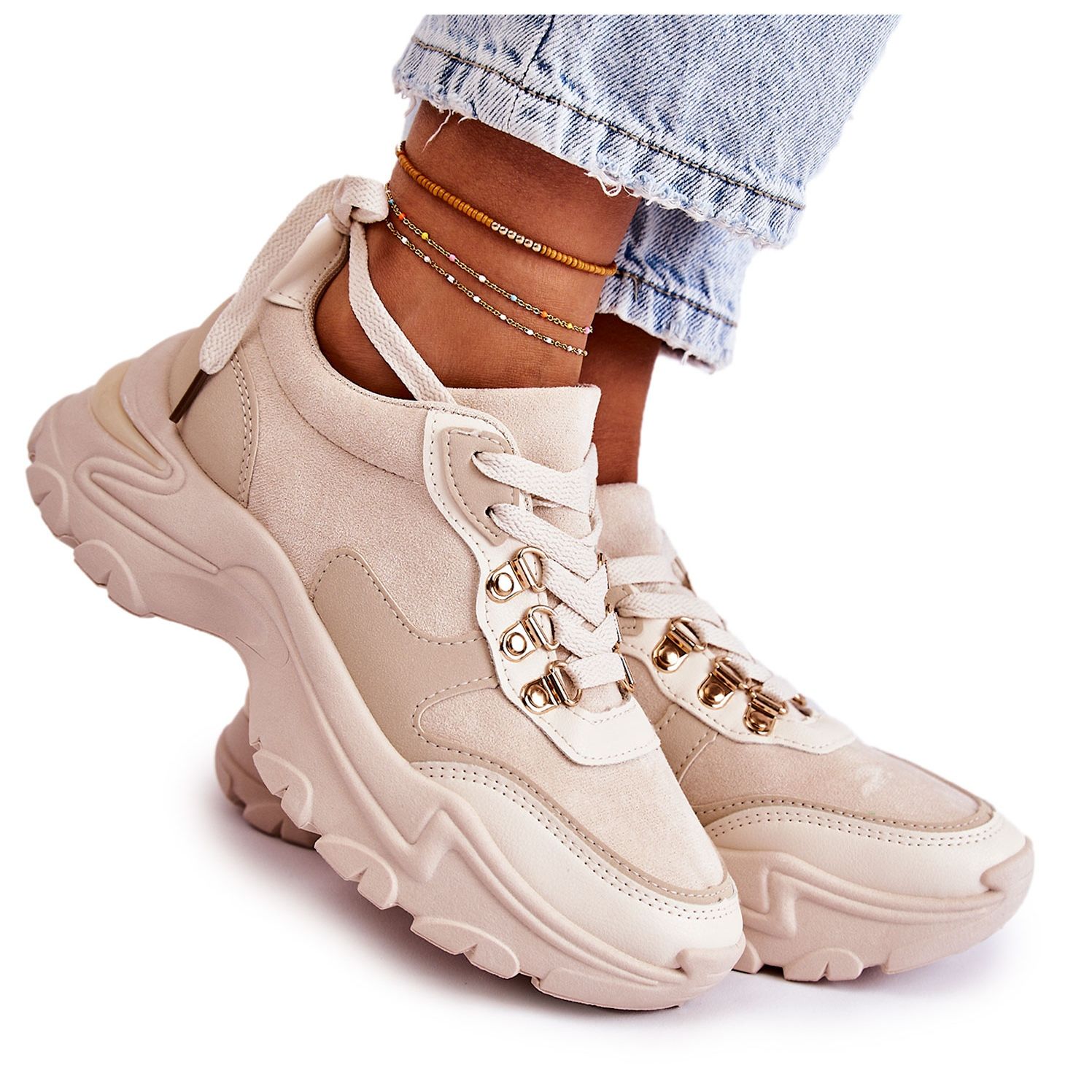Upptäck elegans och komfort i en av de senaste modellerna från PG1 - sportsneakers i mocka för kvinnor i en ljus beige nyans. Dessa unika skor är gjorda av högkvalitativ eko-mocka och eko-läder, vilket inte bara ger dem ett moderiktigt utseende, utan också är miljövänligt.