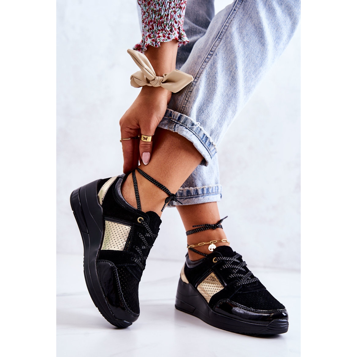 Detaljer: S.Barski Sportskor i mocka för kvinnor på en kil Svart Larson