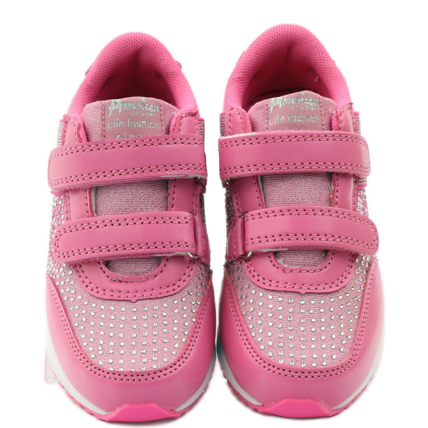 Vi erbjuder unika sportskor för barn från det välkända märket American Club, modell modell. 17326. Dessa rosa skor, dekorerade med strass, är det perfekta valet för små flickor som värdesätter stil och komfort.