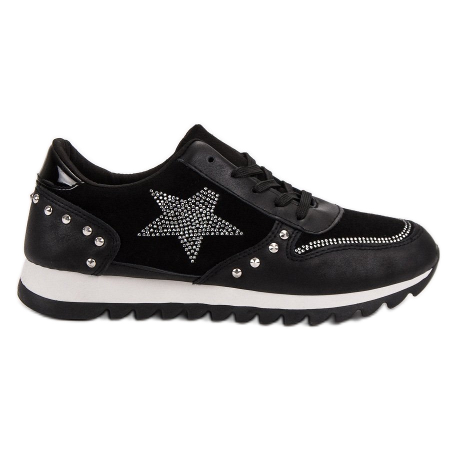 Upptäck extraordinära svarta sportskor med kristaller som kombinerar stil och funktionalitet. Denna unika modell skapades för fashionabla kvinnor som vill se perfekta ut inte bara under fysiska aktiviteter, utan också varje dag. Tillverkade av ekologisk mocka och läder av hög kvalitet garanterar de hållbarhet och motståndskraft mot skador, vilket gör dem till ett idealiskt val för alla tillfällen.