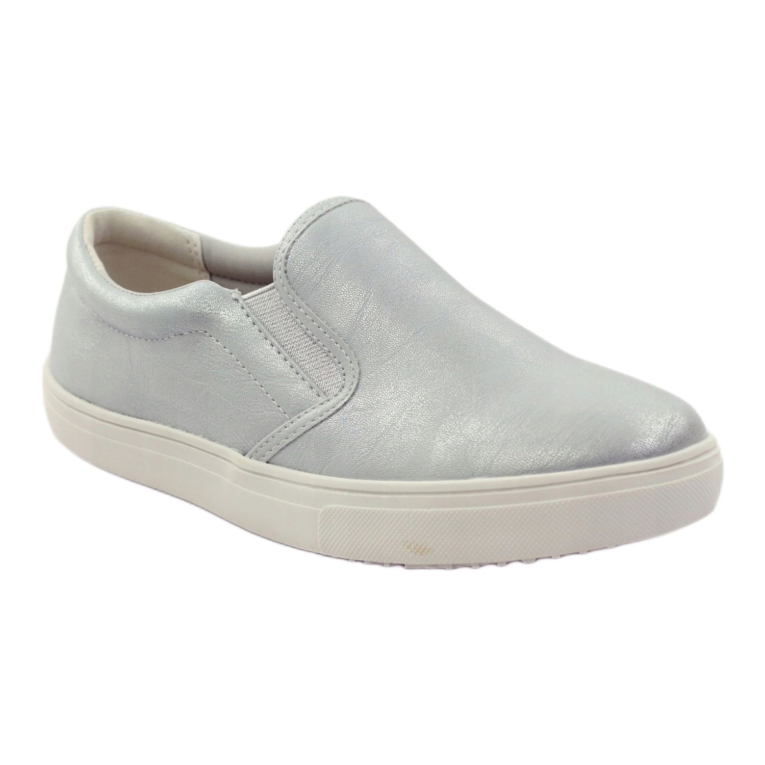 Insidan av sneakers är dekorerad med bomullstextilmaterial, vilket säkerställer andningsförmåga och komfort när de bärs. Dessutom framhäver läderinnersulan fotens profil och ger mjukt stöd i varje steg. Intressanta silverfärger med en delikat glans kommer säkert att tilltala små fashionistas.