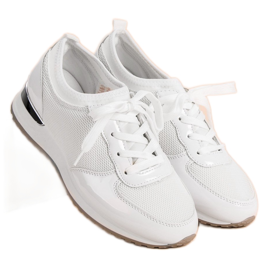 Deras unika design kombinerar minimalistiskt vitt med glänsande lackerade element som ger dem en elegant men ändå sportig karaktär. Silverfinishen på hälen tillför lite fräschör och skiljer dem från andra modeller.