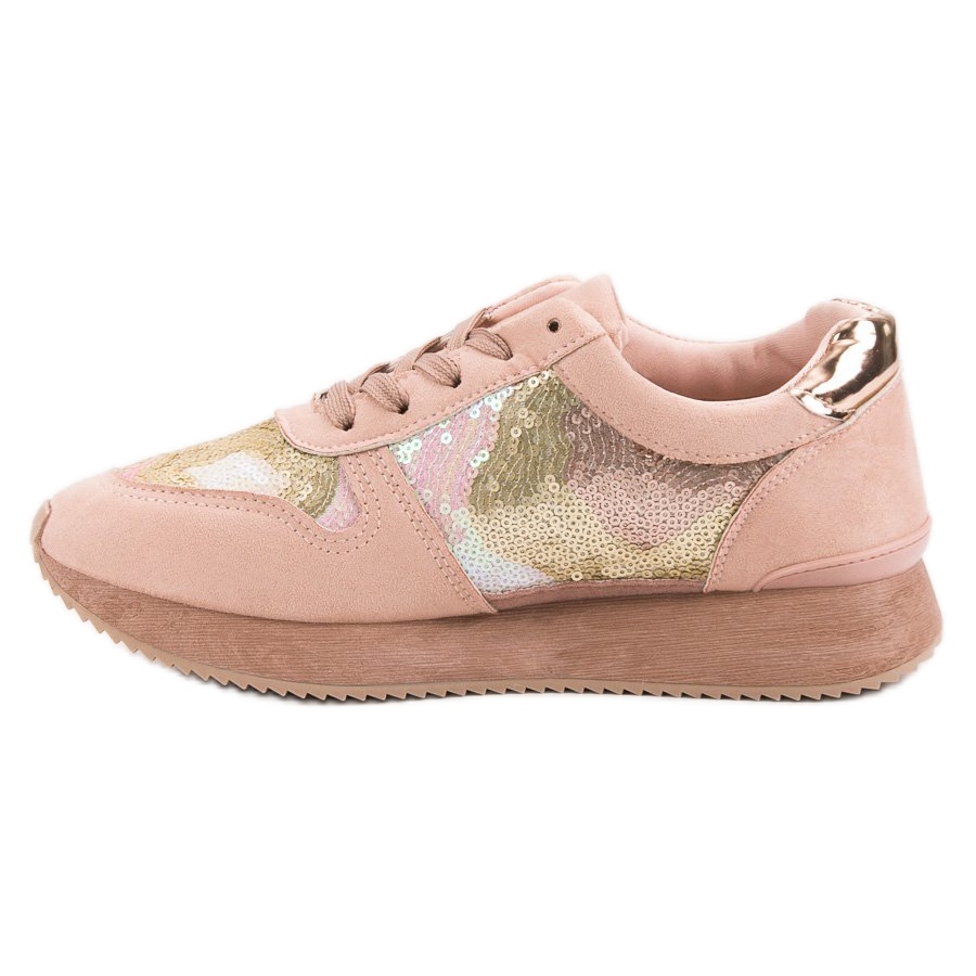 Tillverkade av eko-mockaläder och tyg garanterar de hållbarhet och andningsförmåga. Dessutom säkerställer en syntetisk sula med slitbana stabilitet och grepp på olika ytor. Den rosa färgen och paljettaccenten matchar perfekt de senaste trenderna, vilket gör dessa skor till ett moderiktigt måste i din garderob.