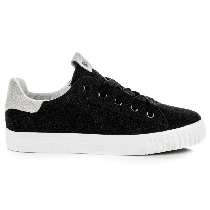 Vi presenterar Ideal Shoes plattformsportskor i en elegant svart färg, som är en perfekt kombination av komfort och stil. Dessa låga sneakers, gjorda av ekologiskt läder, matchar perfekt de senaste modetrenderna och ger samtidigt komfort under vardagsbruk.