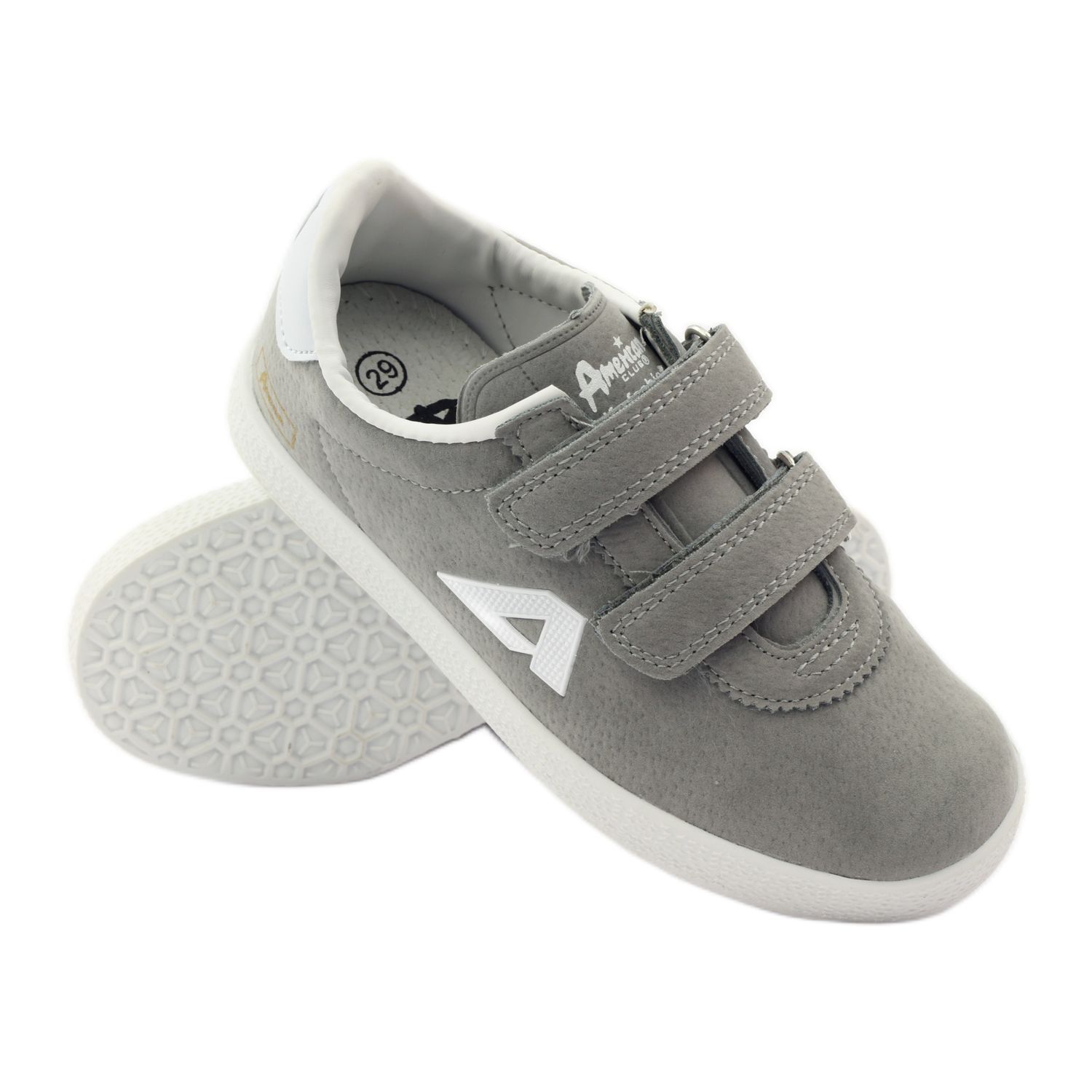 American Club sport sneakers modell 2952 är det perfekta valet för aktiva pojkar. Tillverkade av högkvalitativt ekologiskt mockaläder ger de inte bara ett estetiskt utseende, utan också hållbarhet och komfort att bära. Gråa skor med vita inslag lockar uppmärksamhet med sin moderna design, som säkert kommer att tilltala de yngsta.