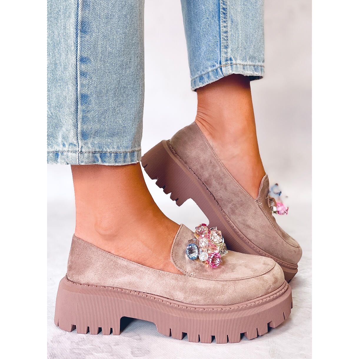 - Modell: Plattform loafers med stenar