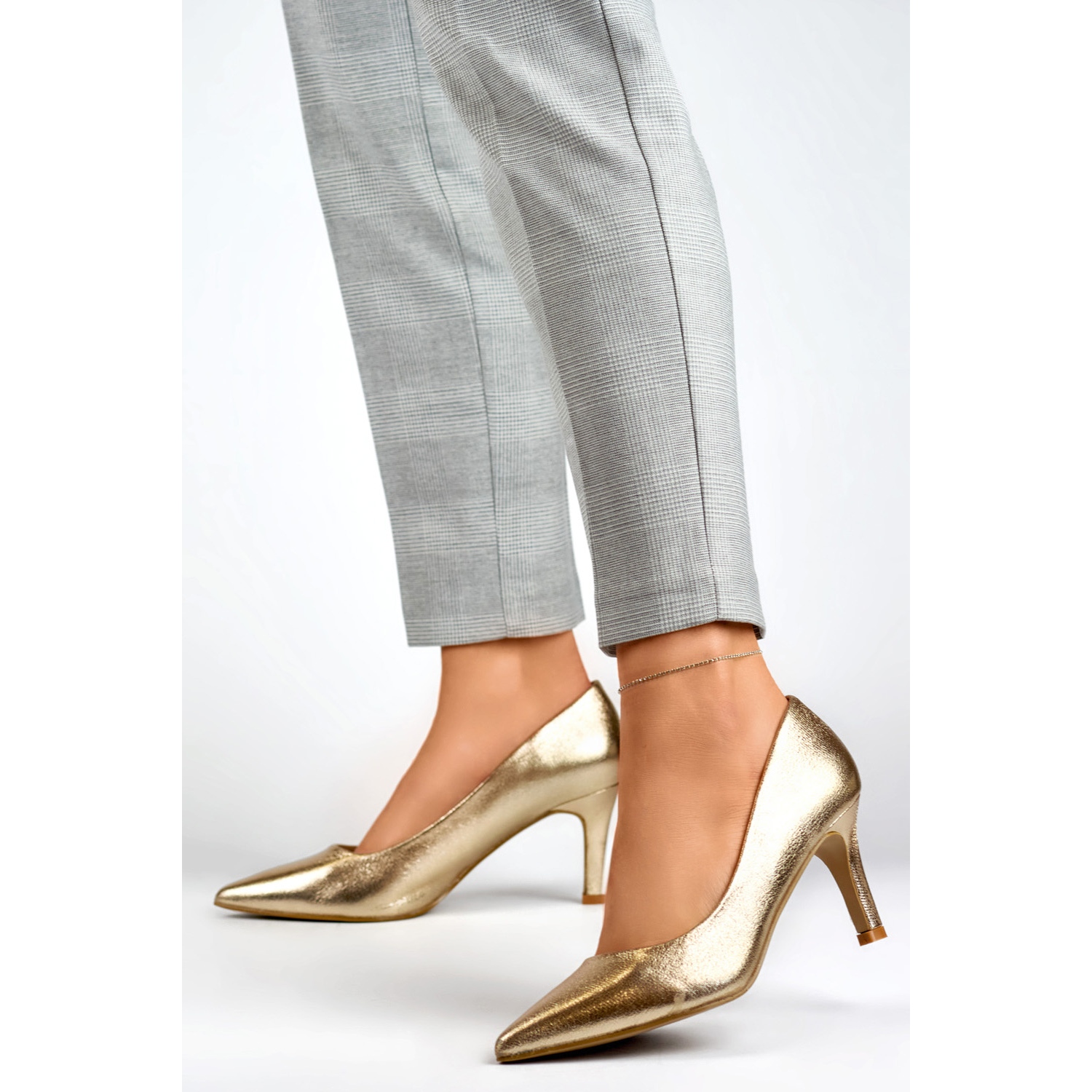 Introducera lite glöd och stil i din garderob tack vare de eleganta stiften GD-FL370C guld från primo-märket. Dessa unika pumpar på en hög häl, gjorda av ekologiskt läder av hög kvalitet, kombinerar fashionabla design med att bära komfort, vilket gör dem till det perfekta valet för olika tillfällen.