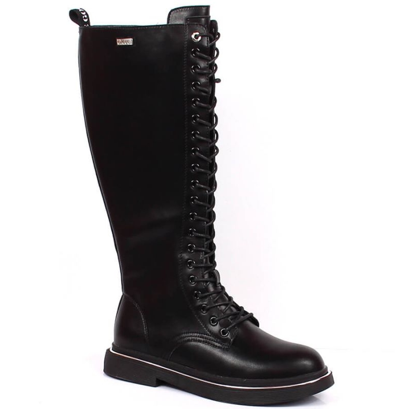 Med en längd över knäet och en rund tå, skyddar den här modellen inte bara mot kyla, utan lägger också till chic till varje styling. Det pälsfodrade fodret säkerställer termisk komfort, vilket gör dem till en idealisk lösning för frostiga dagar. Stövlarna knäpps med dragkedja och snören, vilket gör det enkelt att ta på sig och anpassa passformen till vaden.