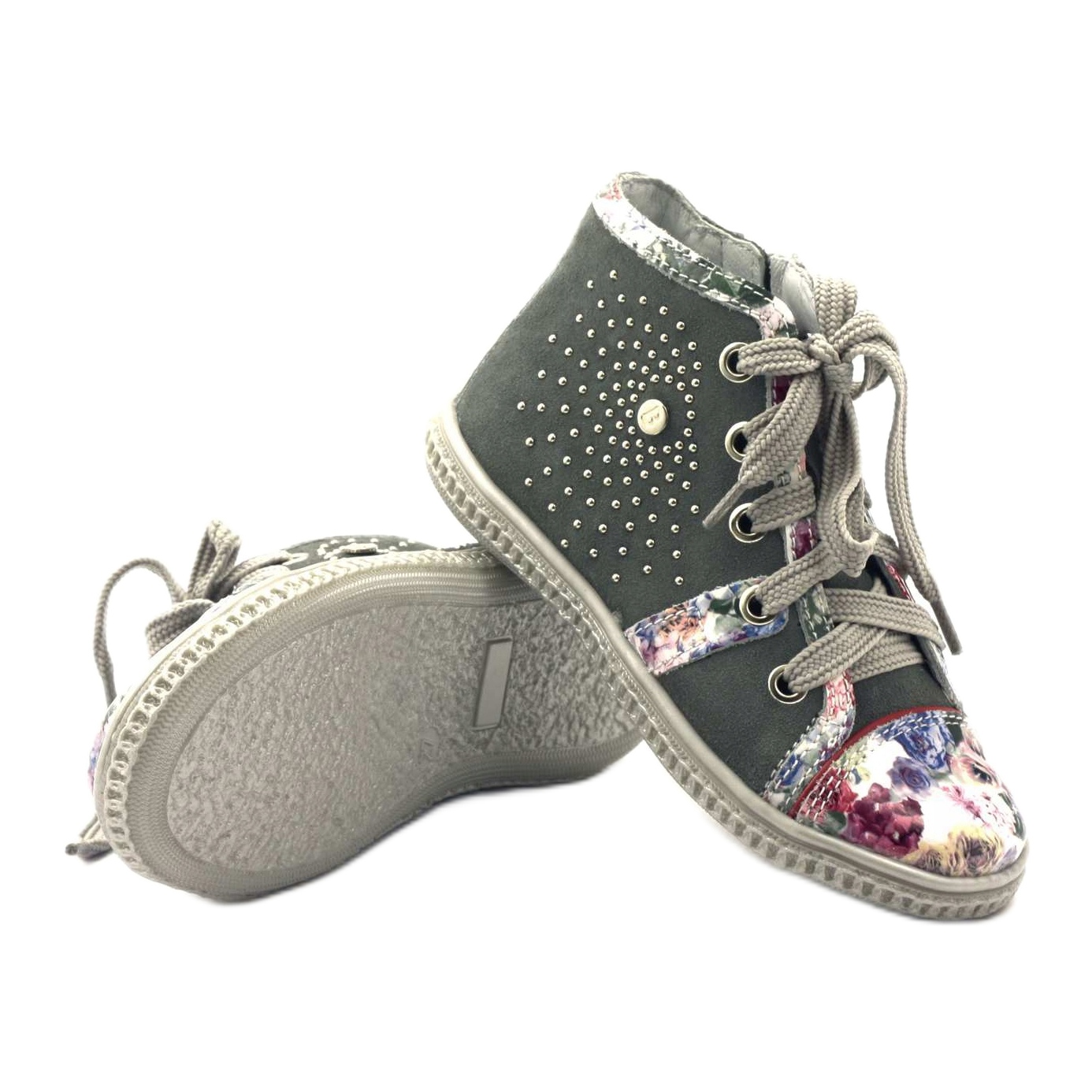 Utformningen av skorna lockar uppmärksamhet - rika paljettdekorationer gör dem till en riktig dekoration av alla barns styling. De rosa och gråa färgerna matchar perfekt de senaste trenderna och möjligheten att välja mellan skosnören och dragkedja gör det lättare att ta av och på skorna.