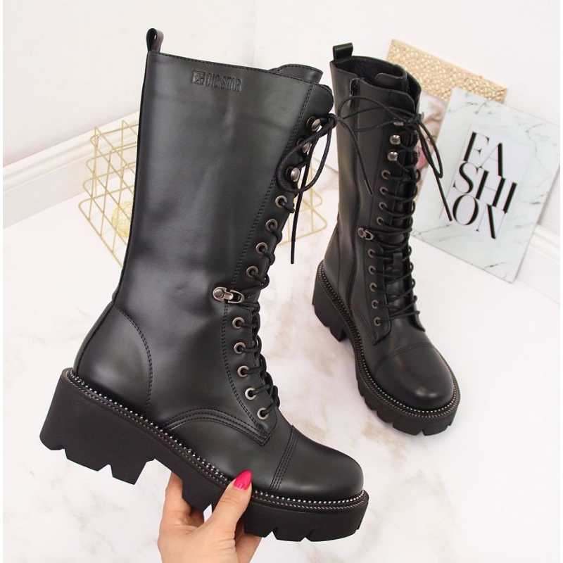 Stiliga, kvinnors stövlar Big Star kombinerar en klassisk, militär karaktär med komfort som krävs dagligen. Den höga, spets -uppdelen med ett extra lås gör det lättare att ta på sig, och den isolerade interiören ger trevlig värme på svalare dagar. En solid, tjock nötningsbeständig sula garanterar hållbarhet och stabilitet på olika ytor.