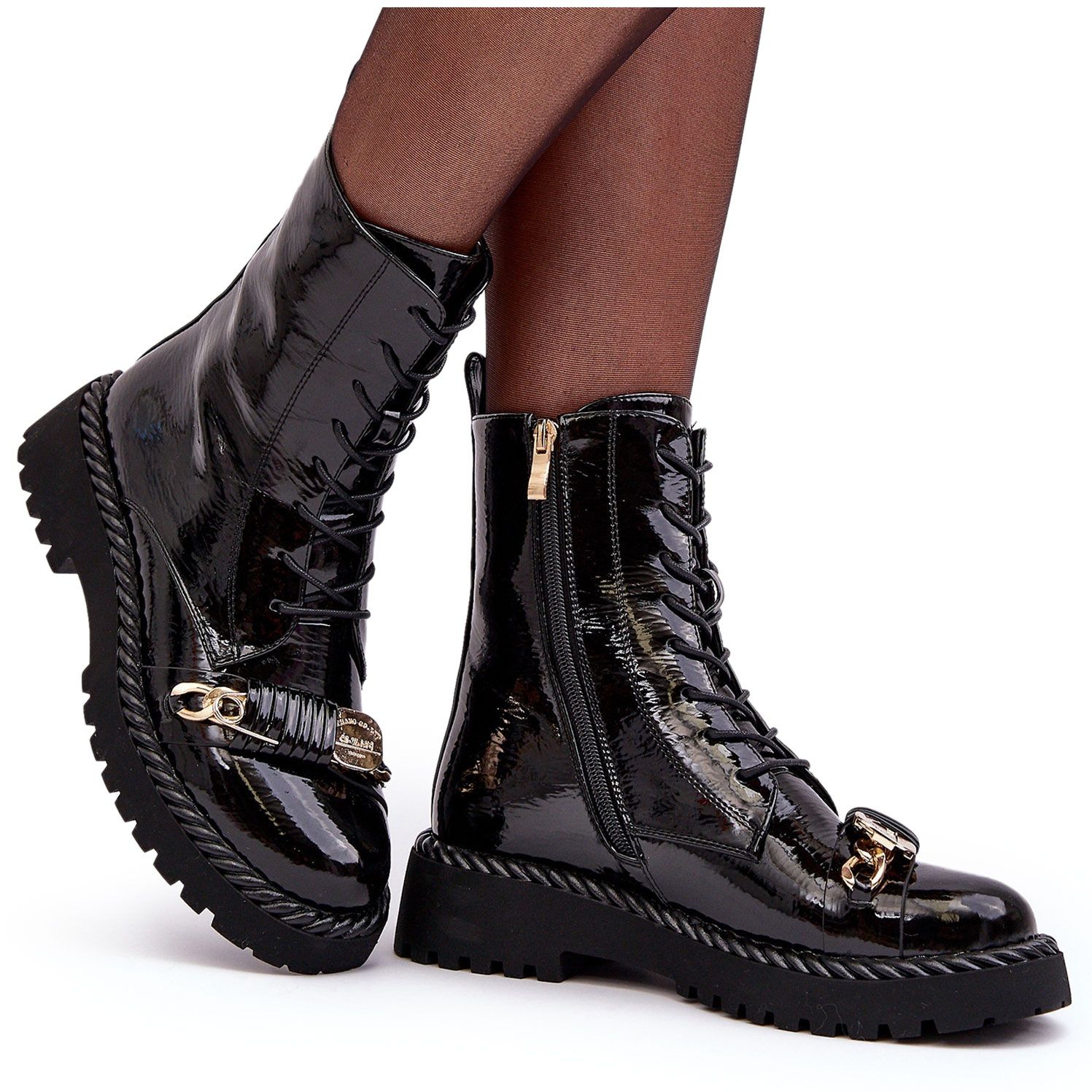 Stövlarna är omsorgsfullt gjorda av högkvalitativt lackläder, som är ett ekologiskt alternativ till naturläder utan att kompromissa med utseende eller hållbarhet. Deras släta, glänsande yta drar till sig uppmärksamhet och ger karaktär åt varje styling.