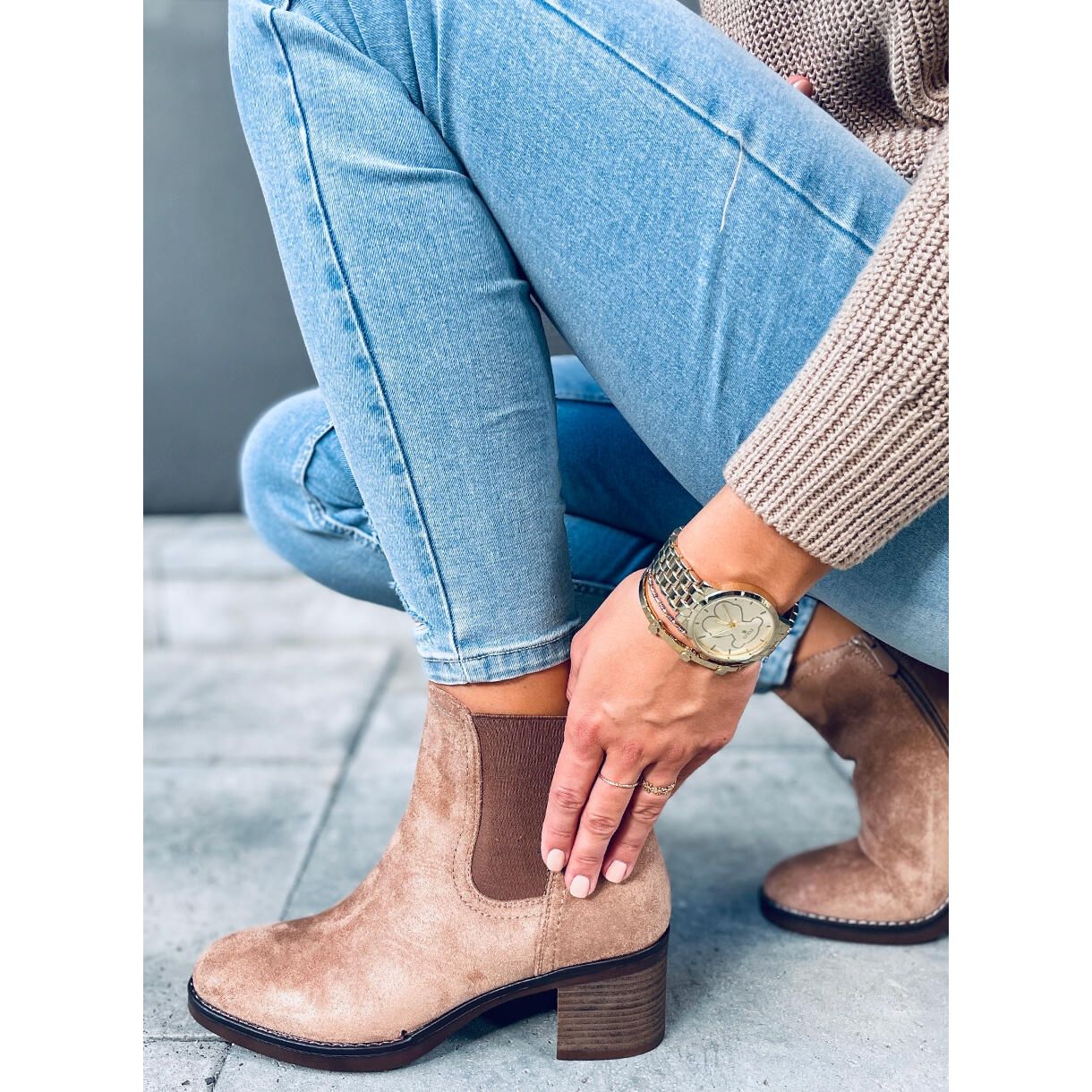 De är gjorda av ekologisk mocka och kännetecknas av ett behagligt material som inte bara ser bra ut utan också säkerställer bärkomfort. En dragkedja på sidan av ovandelen gör den lätt att ta på, och det elastiska inlägget vid ankeln hänvisar till klassiska Chelsea-stövlar, vilket ger en modern look till stövlarna.