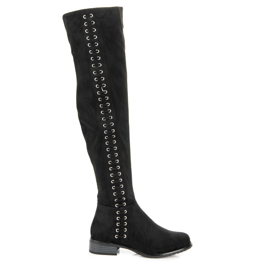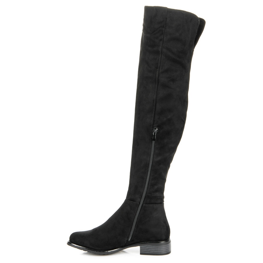 Ovandelen ovanför knäet ger elegans och den runda tån säkerställer komfort hela dagen. Stövlarna är försedda med dragkedja vilket gör dem lätta att ta av och på. Den 3,5 cm platta hälen gör dem inte bara snygga, utan också bekväma, vilket gör dem till ett idealiskt val för långa promenader eller vardagsutflykter.
