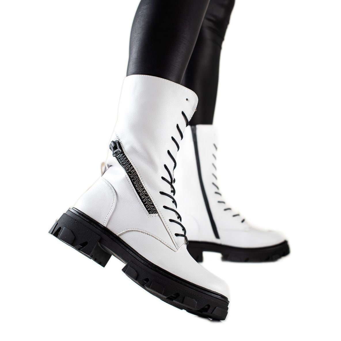 Detaljer: Stövlar med dekorativ dragkedja av Sergio Leone vit