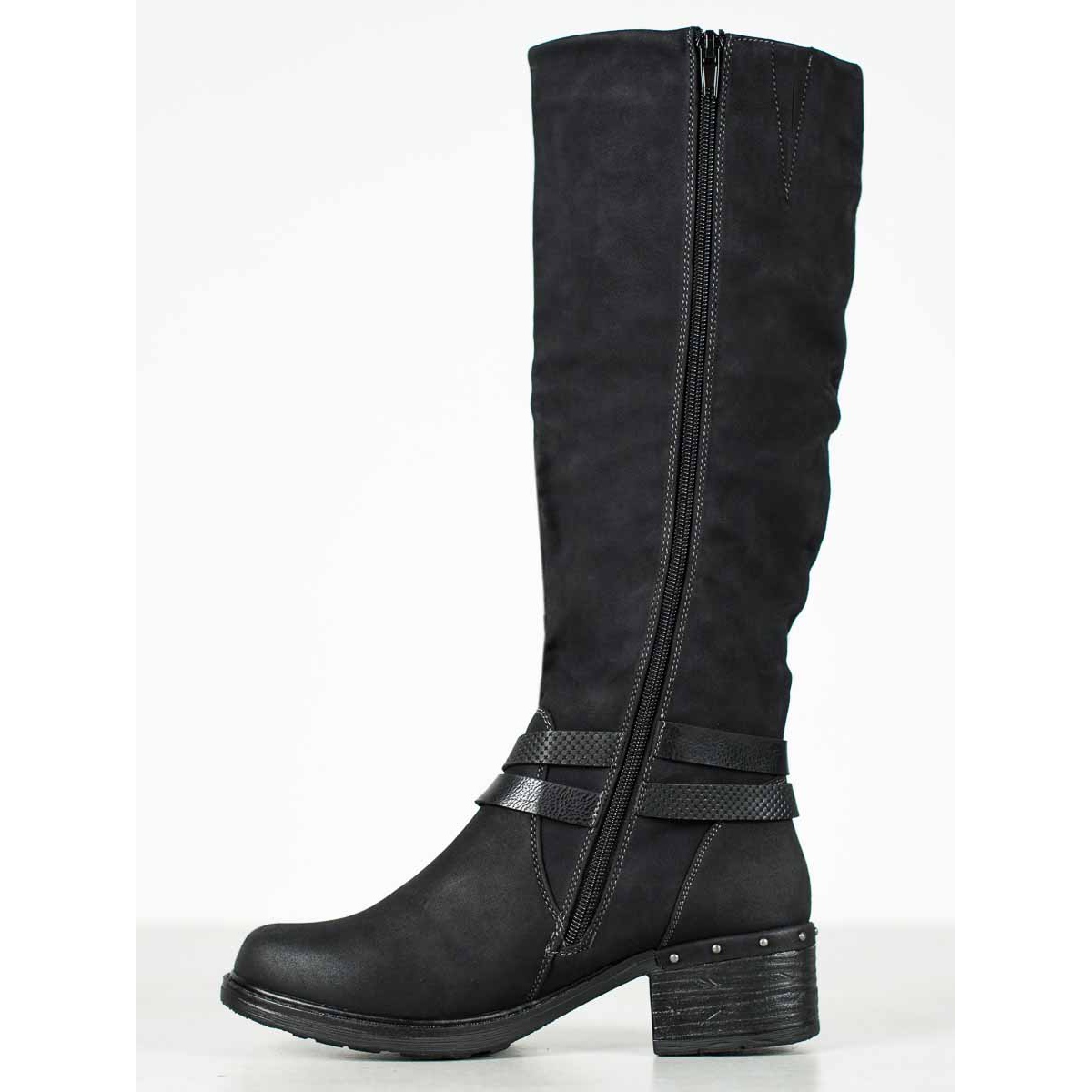 SHELOVET Stövlar med en dekorativ rem i svart är det perfekta valet för kvinnor som vill kombinera stil med komfort under kallare dagar. Dessa klassiska stövlar är gjorda av ekologiskt läder och kännetecknas av en attraktiv design och subtila dekorativa spännen som ger dem karaktär.