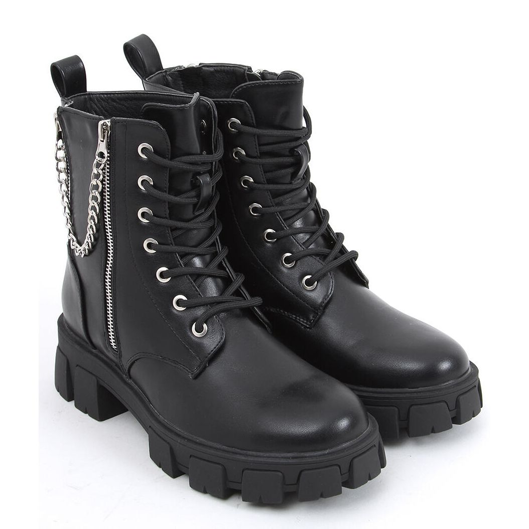 Upptäck de unika Eline Black ankelboots med kedja, som kommer att bli en oumbärlig del av din garderob! Dessa eleganta, svarta arbetarskor med en tjock sula kombinerar de senaste trenderna med funktionalitet och skapar en idealisk modell för både vardaglig och avslappnad styling.