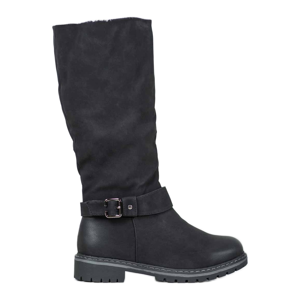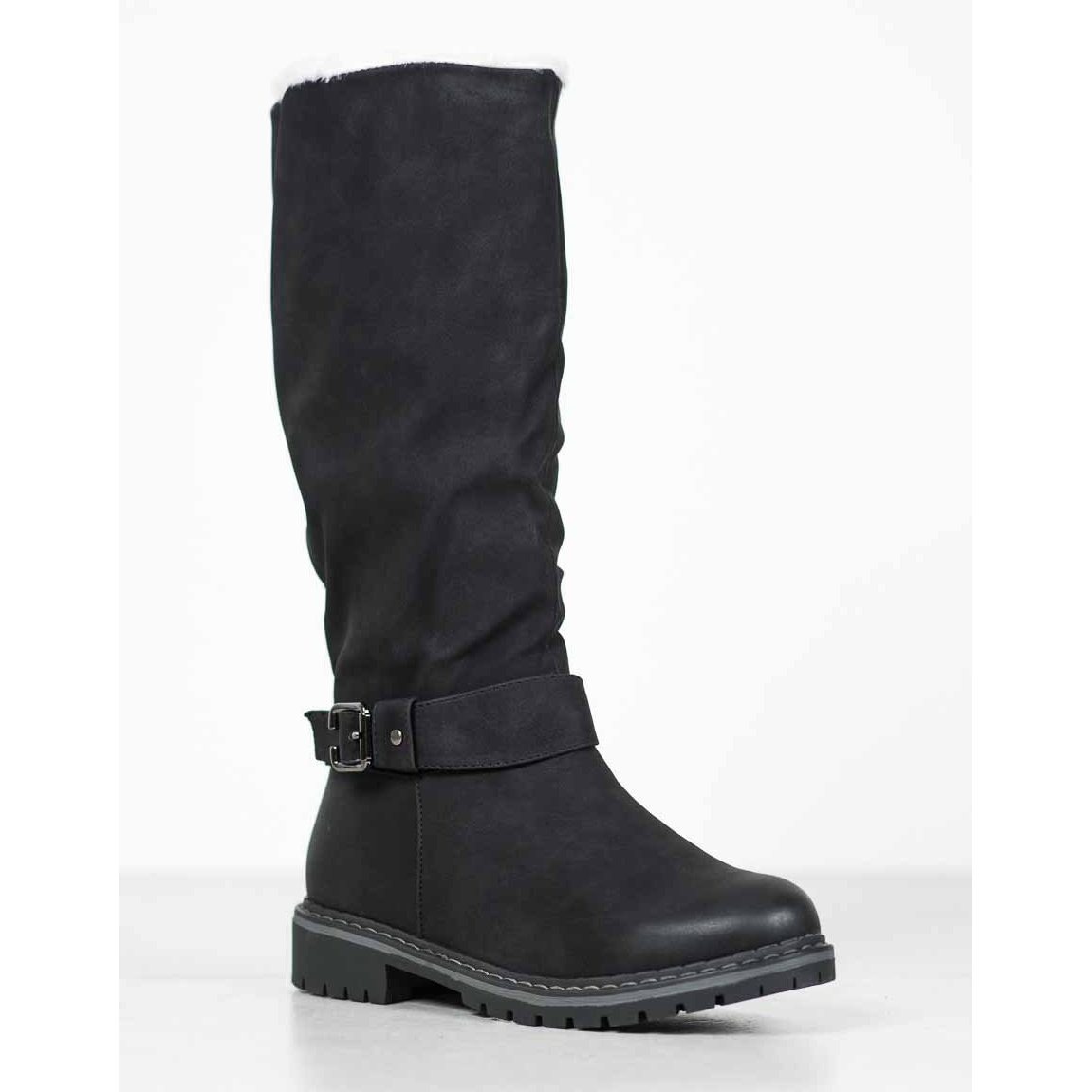 Stövelns klassiska snitt, som når till mitten av vaden, gör att dessa skor perfekt matchar många stilar - både byxor, kjolar och klänningar. En korrekt designad sula gjord av syntetiskt material säkerställer komfort och stabilitet när du går. Dessutom gör en platt 3 cm hög klack stövlarna bekväma, även efter långvarig användning.