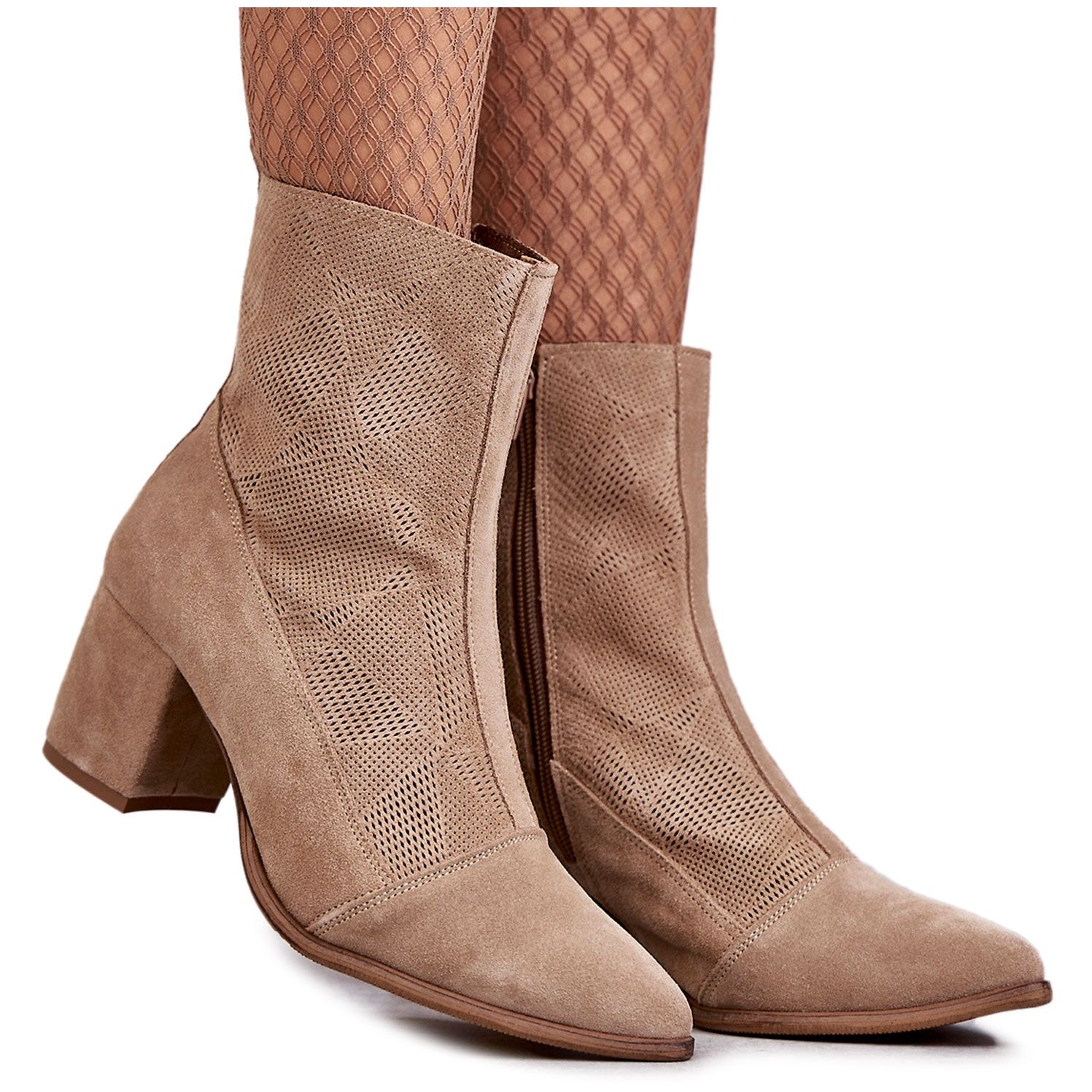 Eleganta och feminina Nicole 2757 -stövlar är en kombination av en klassisk form med subtila, öppna arbetsdekorationer som ger lätthet till alla stilisering. De är gjorda av naturliga mocka av hög kvalitet, med en naturlig läderinsats, de garanterar komfort att bära och en snygg look - perfekt för arbete, för möten eller kvällsutflykter.