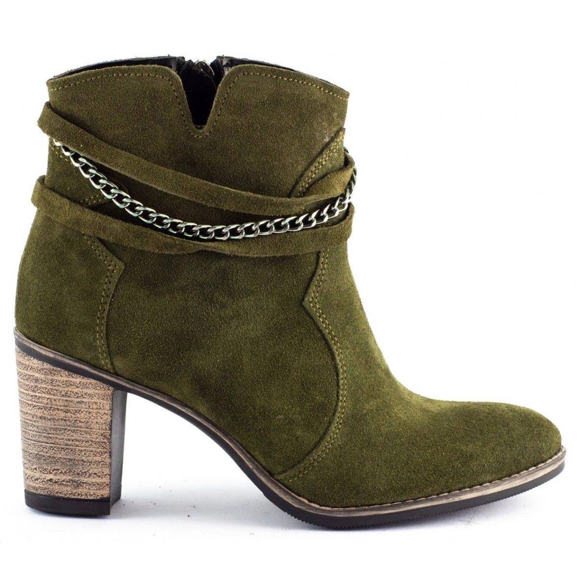 Snygga ankelstövlar Olivier Megi är ett utmärkt val för höst- och vintersäsongen för kvinnor som kombinerar komfort med ett sofistikerat utseende. Tillverkad för hand 100% nubuk läder, de glädjer sig med en ädel struktur och en subtil dekoration i form av en metallkedja som lägger till hela karaktären.