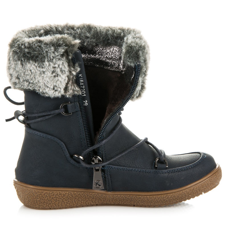 Snygga och bekväma stövlar för tjejer som kombinerar en moderiktig look med praktiska lösningar. Tillverkad av högkvalitativt ekologiskt läder, med mjuk päls på ovansidan, vilket ger charm och ger extra isolering. Snörstängningen möjliggör en exakt passform till foten och den solida sulan säkerställer säkert fotfäste på hala underlag.