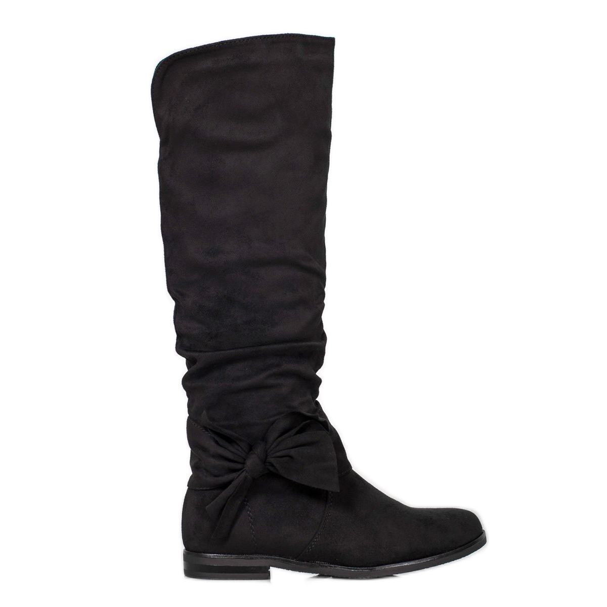 Stövlarna kännetecknas av en platt 2 cm hög klack, vilket gör dem extremt bekväma, även under längre promenader. Den knähöga ovandelen är försedd med dragkedja, vilket gör dem lätta att ta av och på. En ytterligare fördel är dekorativa mockabågar placerade på sidan, vilket ger skorna en unik charm.