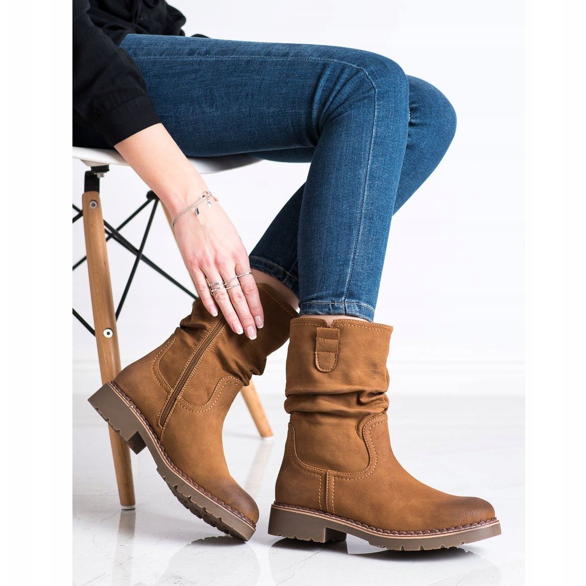 En platt klack med en höjd på 3,5 cm och en skaftbredd på 30 cm garanterar komfort i vardagsbruk. Tack vare användningen av en plastsula med slitbana ger stövlarna ett utmärkt grepp, vilket gör att du känner dig säker vid varje steg.