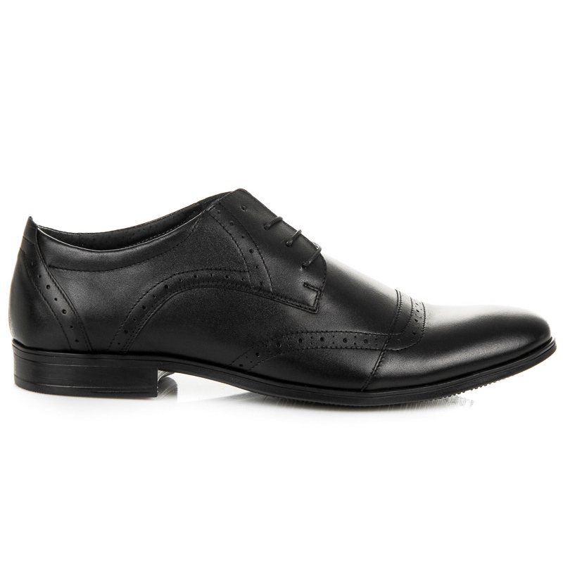 Lucca - herrskor i en klassisk, elegant variant. Svart, slätt naturläder och en tidlös skärning gör att modellen perfekt matchar en kostym och andra eleganta stilar. Tack vare den stabila, platta plastsulan ger skorna bekväm gång och låter dig dansa i långa timmar.