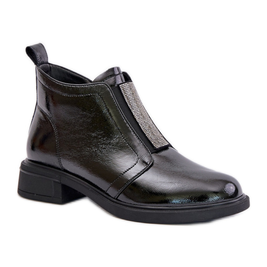 Den övre, räcker in i vristen och en rundad näsa ger stövlarna en klassisk och universell karaktär. En ytterligare fördel är de subtila strassen, som dekorerar framsidan av skor och introducerar lite glöd för varje stilisering. Dragkedja -Fastened Boots gör det lättare att ta på sig och ta av, vilket är en praktisk lösning varje dag.